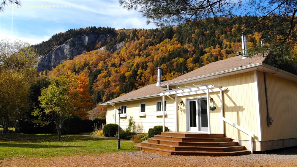 Nestled at the foot of a rocky cliff and bordered by the stunning Bras-du-Nord River,
