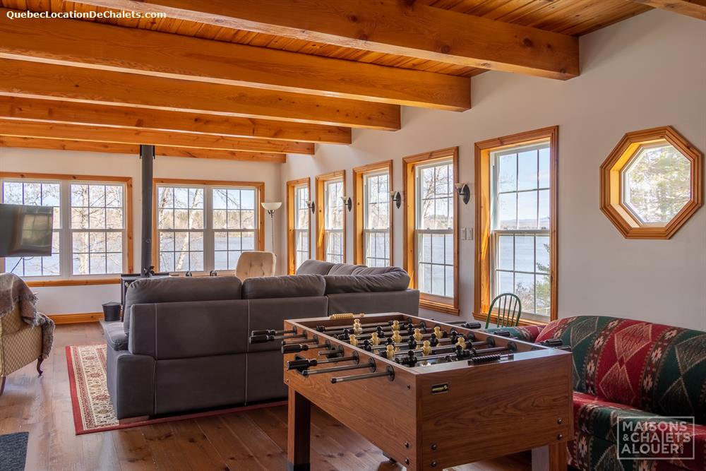 Located directly on the shores of Lake Boissonneault, in St-Claude in the Eastern Townships, this cottage for rent will be greatly appreciated for stays with family or friends. You will be able to enjoy the pleasures of the summer during your stay. Swimming is pleasant, with a lake bottom in small rocks and sand. We have 1 canoe, 1 pedalboat and 2 kayaks at your disposal to allow you to explore the lake. The fishing is good there; the most common catches are bass, walleye, yellow perch, pike and bluegill. Winter fishing is practicable when ice permitting. You must bring your own equipment.