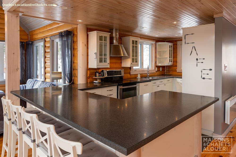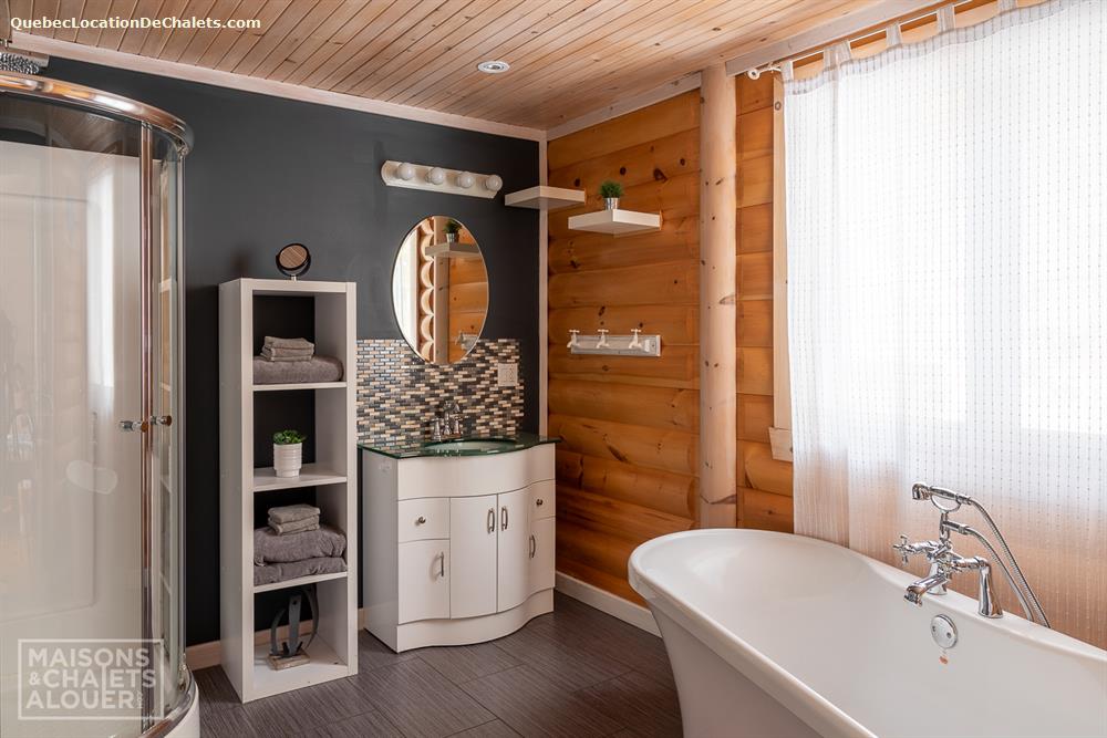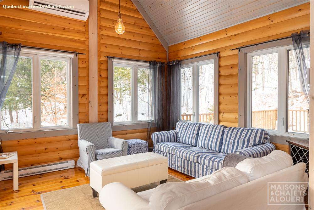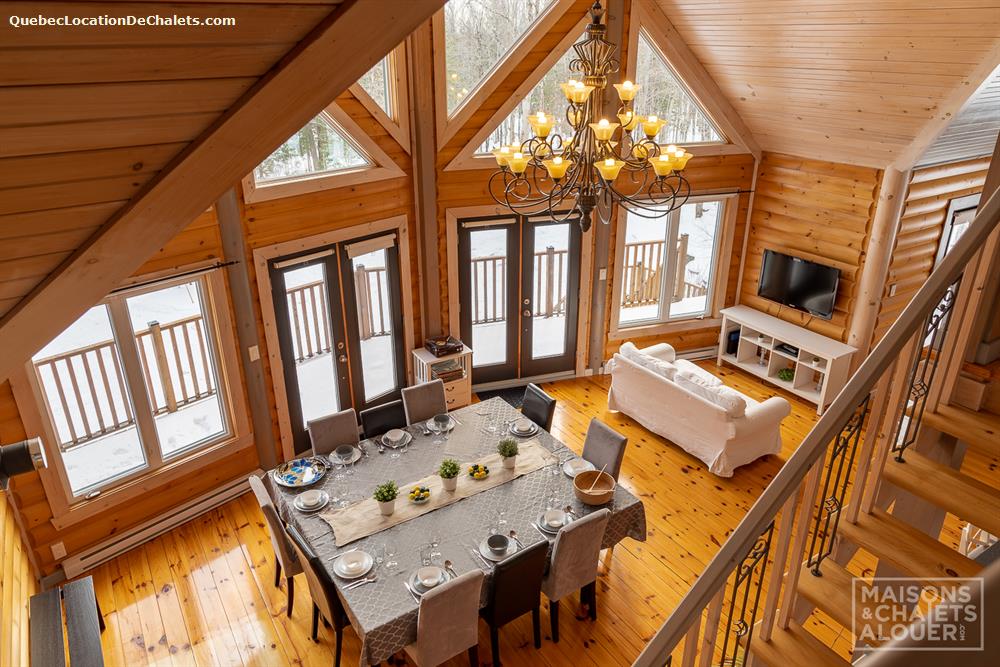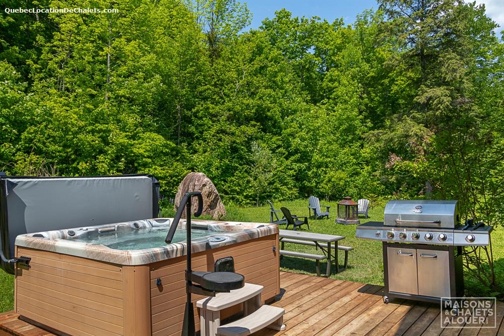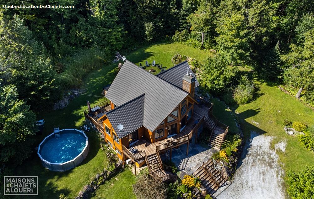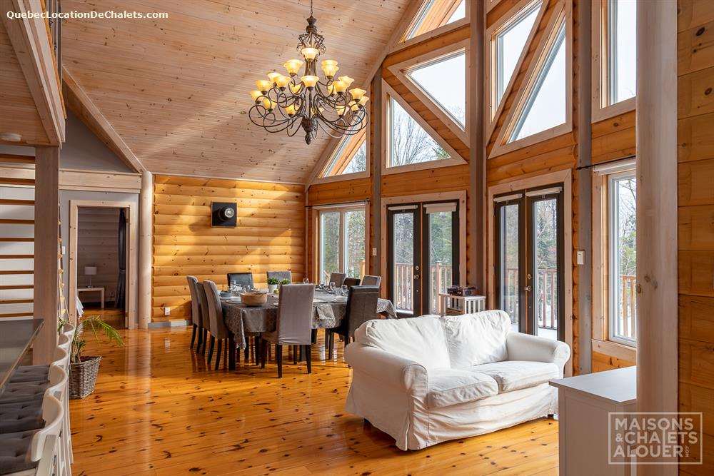 The real cottage life is at Le Scandinave! Located on a 2.5 acre wooded lot, this large house for rent stands out for its impressive architecture. With its large wooden terrace overlooking the rising sun, the mornings will be most pleasant. A large grassy field is offered to you for enjoying group activities. A private 4-season jot tub is at your disposal to allow you to fully relax during your stay.
