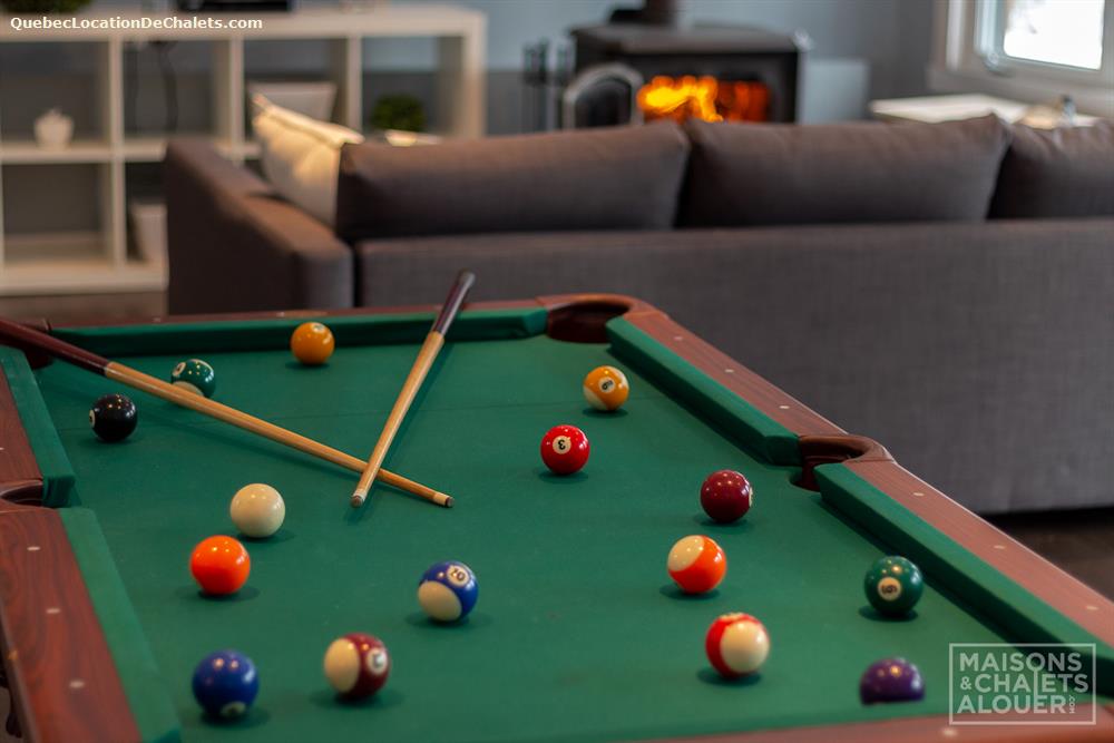 A large family room with a wood stove is located on the garden level. The wood stove, with wood provided will be greatly appreciated during stays a little cooler. You can also play a game or two of billiards.
