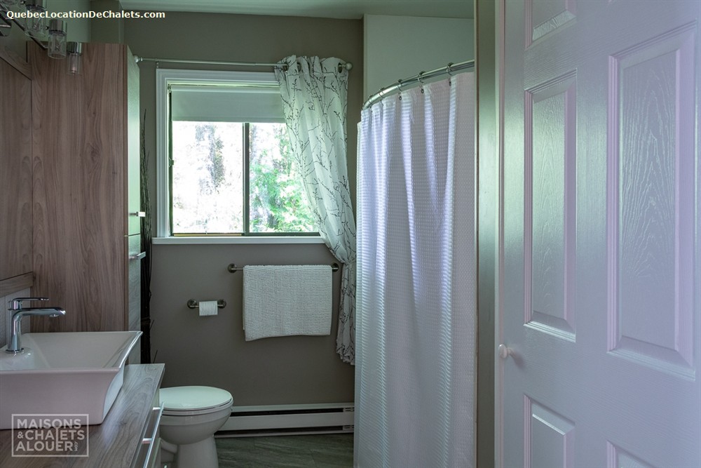 This cottage is nice and cozy, and has a lot of woodworks which brings a warm touch to the house, especially in the common areas of the house. The living room is very pleasant for relaxing by the burning wood stove, without forgetting its access to the outdoor terrace. The kitchen, annexed to the dining room is very luminous thanks to the many windows overlooking the lake. You will also find 2 closed bedrooms and 1 bathroom on this floor. The basement serves as a large family room and also has 2 bedrooms and 1 bathroom.