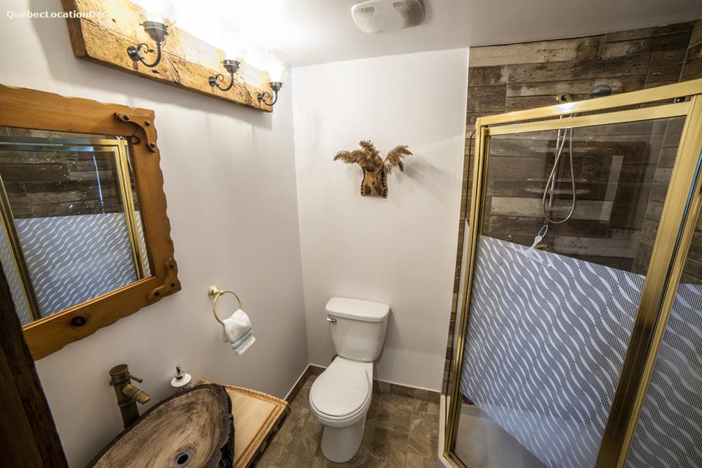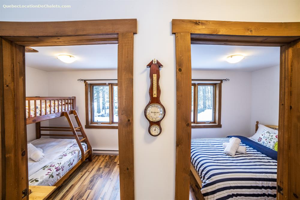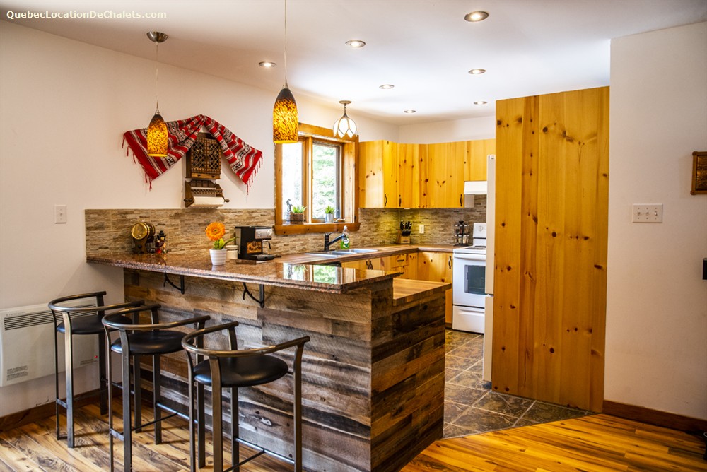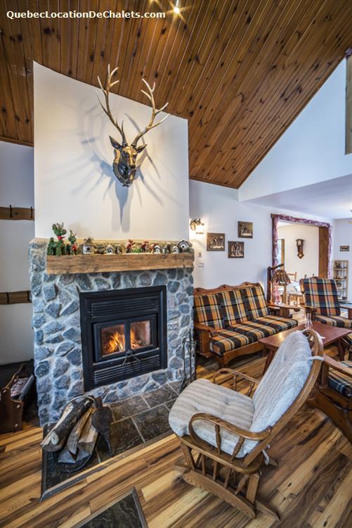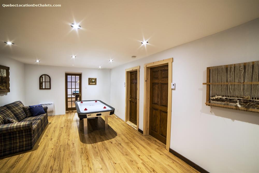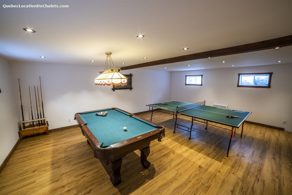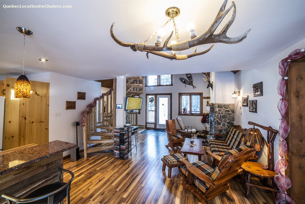 The Rustic Chalet located in the heart of the forest is an hour and a half from Montreal. The Chalet has 4 bedrooms, two bathrooms, an open kitchen, a dining room and a living room and can accommodate max.15 people. Each floor has a bathroom equipped with towels. The basement bathroom equips a washer and dryer. Just accross the road, a small river will allow you to have fun on water tubes (the tubes are provided). A 15-minute drive from the chalet is Mont Tremblant and a 5-minute natural sandy beach. TV cable, pool table, ping pong table, air hockey, trampoline and jaccuzi are included . . . Everything for a dream vacation!