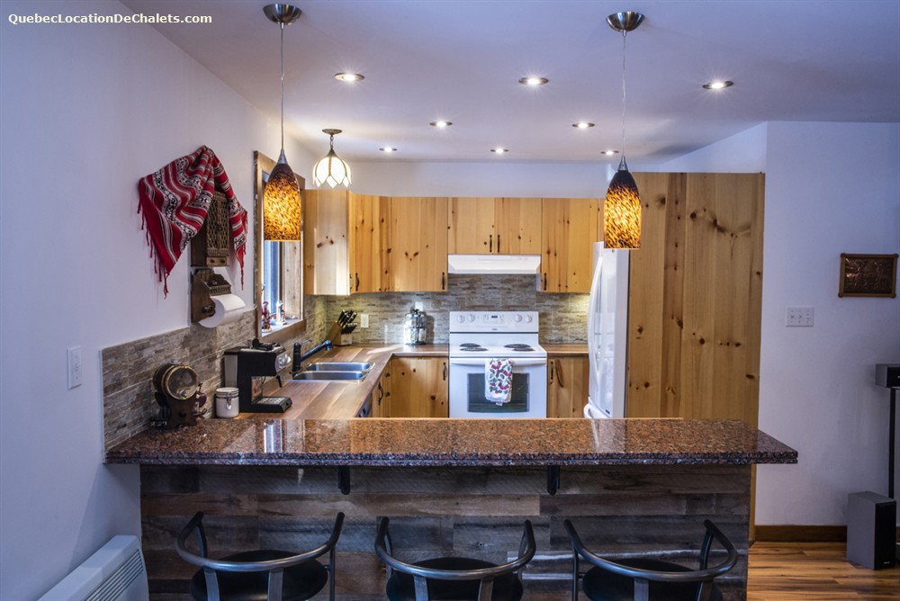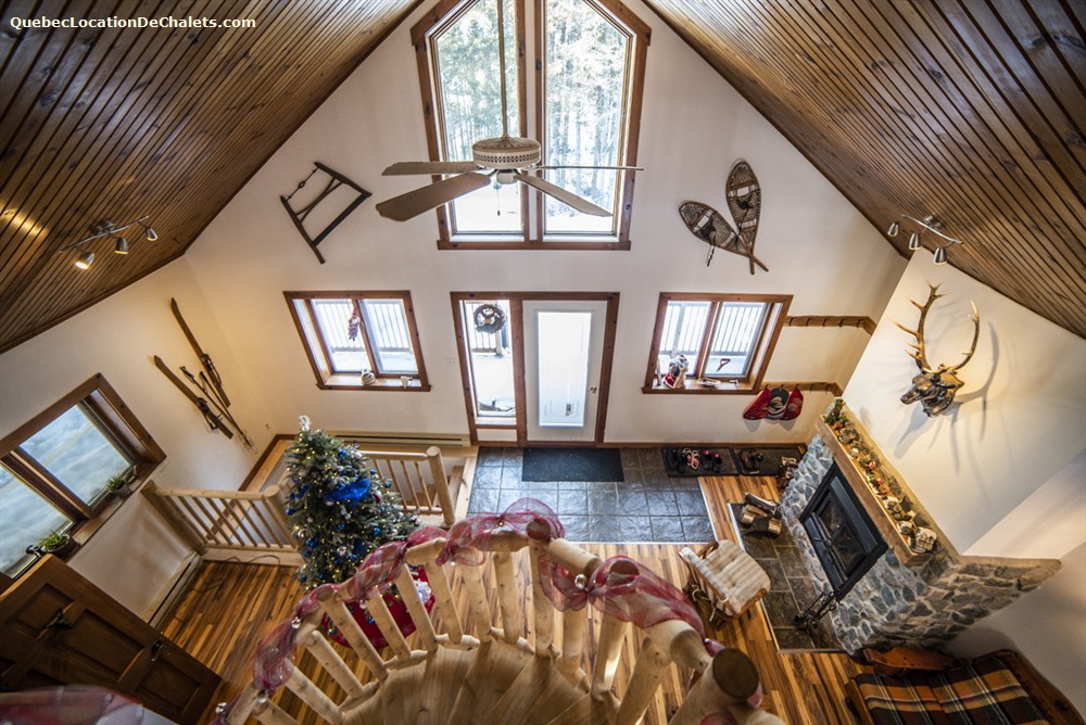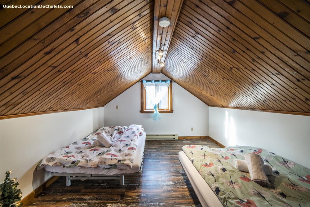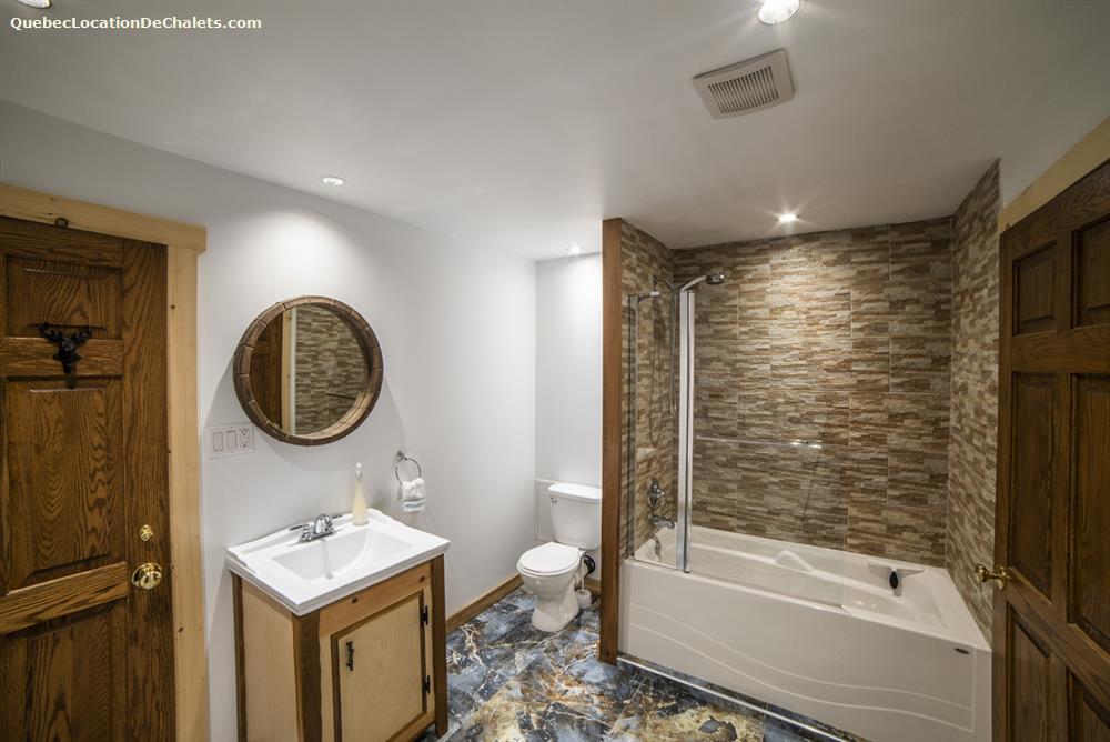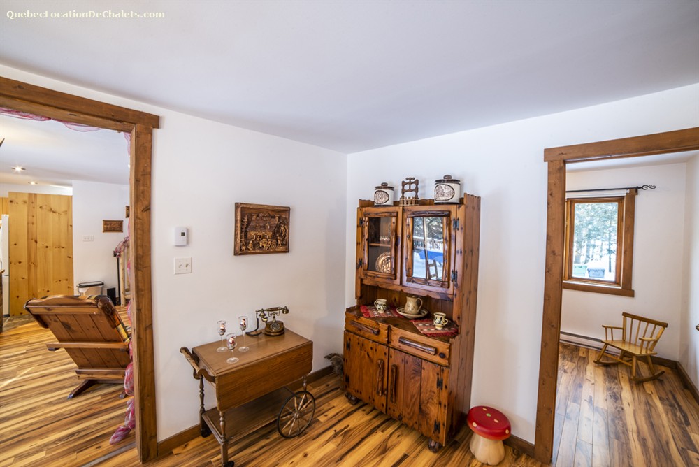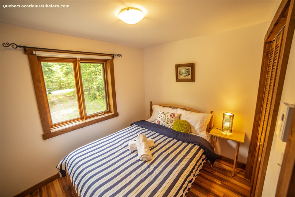 The Rustic Chalet located in the heart of the forest is an hour and a half from Montreal. The Chalet has 4 bedrooms, two bathrooms, an open kitchen, a dining room and a living room and can accommodate max.15 people. Each floor has a bathroom equipped with towels. The basement bathroom equips a washer and dryer. Just accross the road, a small river will allow you to have fun on water tubes (the tubes are provided). A 15-minute drive from the chalet is Mont Tremblant and a 5-minute natural sandy beach. TV cable, pool table, ping pong table, air hockey, trampoline and jaccuzi are included . . . Everything for a dream vacation!