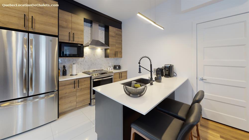 New condo with spectacular views of Lake Archambault. A few steps from the village, 3km from Mont Garceau and 5km from the Ski La Réserve. Beautiful kitchen fully equipped and functional and all amenities. Rear balcony with a view of Mount Garceau. Very spacious condo includes all high-end appliances and Nespresso and Keurig Coffee makers. Includes high-speed internet, WiFi, cable, and smart TV. Also, large storage room for ski equipment, hiking, Fat Bike, etc.