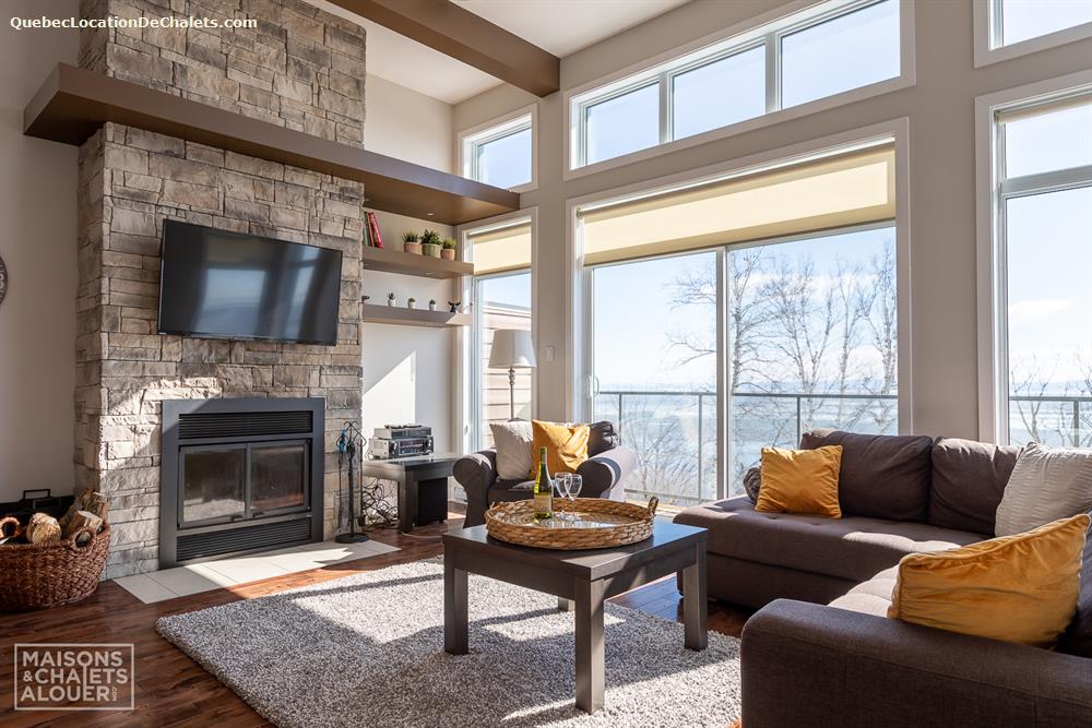 For a relaxing and entertaining stay in the Charlevoix region, this is the address for you! Halfway between Baie-St-Paul and Le Massif, this large semi-detached house, located in the municipality of Petite-Rivière-Saint-François, will charm you with its ideal location to enjoy outdoor activities during the day, and then relax with the view of the river after a busy day! When you arrive in the parking lot, the right side of the semi-detached is rented to you. The left side is occupied by other tenants. Built on the mountainside, this cottage enjoys a breathtaking view of the St. Lawrence River and offers a refined, chic and bright layout. The sunsets are simply tireless.