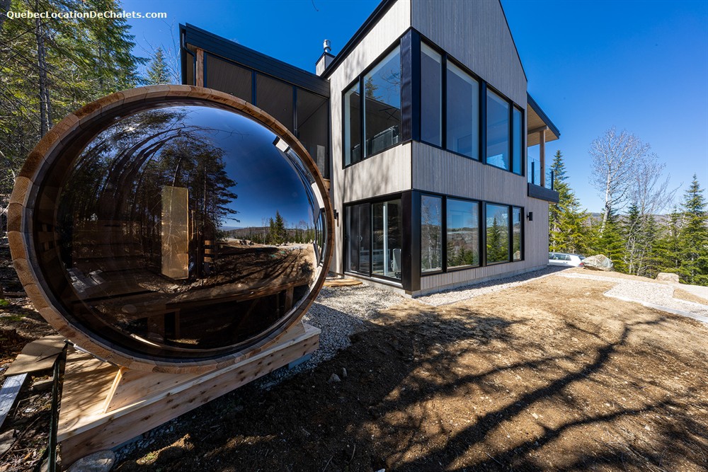 A sense of being one with nature is assured, with an unparalleled view of the St. Lawrence River, the mountains and Isle-aux-Coudres island through generous full-size windows and from two spacious, well-equipped terraces. Contemplate the Charlevoix landscape as you unwind around the firepit, relax in the Jacuzzi or settle into the scenic sauna -- a must.