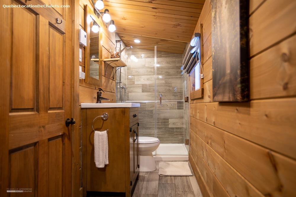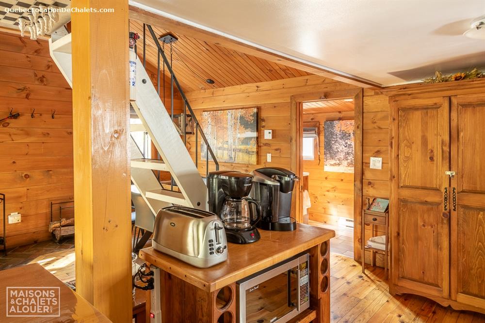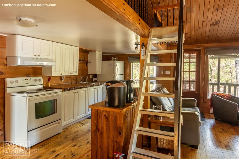 This cottage is ideal for a stay as a couple out with the small family. In the basement you will find the open concept with a kitchen perfect for cooking with others, the dining room, and the living room. The wood stove in the living room will be greatly appreciated during the winter. A bathroom and a closed bedroom complete this floor. The 2nd bedroom is located upstairs, the mezzanine (low ceiling).
