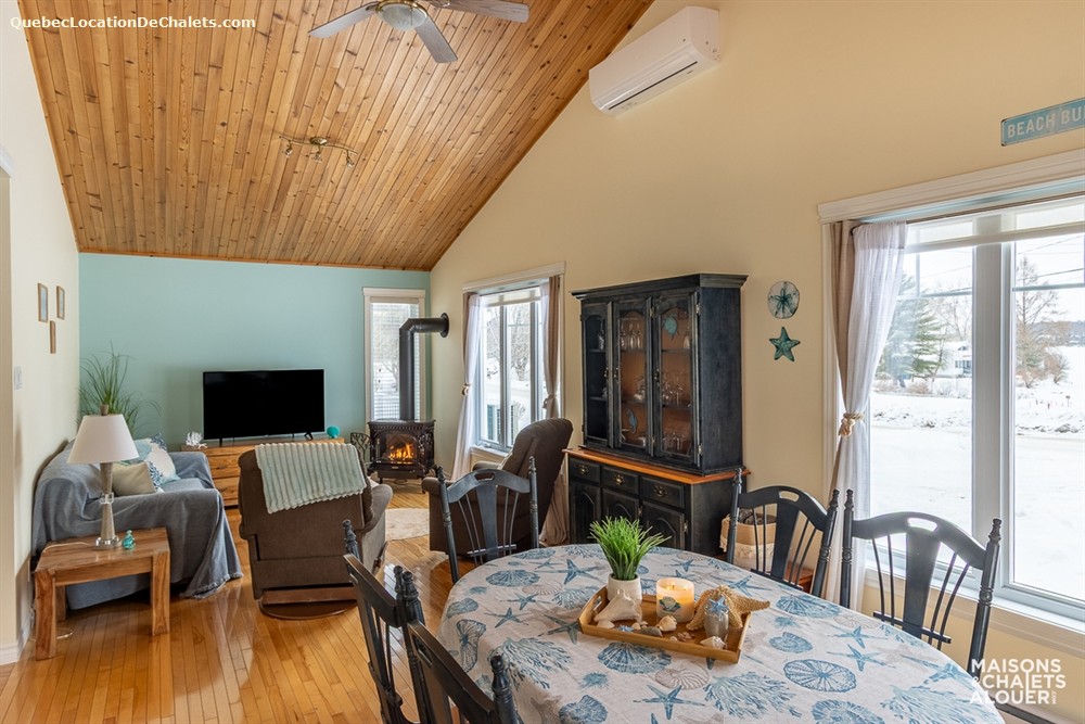 In every season, come and enjoy the Au Coin du Lac Boissonneault cottage, located in the Saint-Claude area of the Eastern Townships. The cottage is situated on the corner lot of 2nd Range of Lac Boissonneault. It's not right on the waterfront, but there is a 1-minute walk to a private dock where you can access the water. The dock cannot be used to moor your boat, but you can launch your watercraft there.
