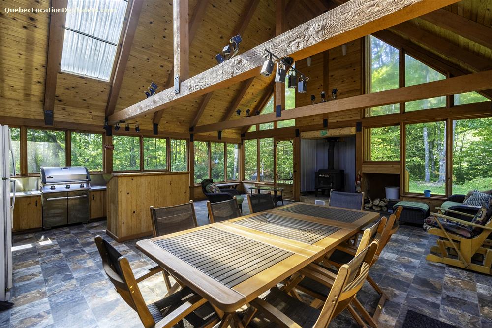 Located on a private 85,000 square foot lot, Chasse-Galerie offers a peaceful setting by a small lake, perfect for swimming with water shoes, as well as a river where you can dip your feet while enjoying an aperitif.