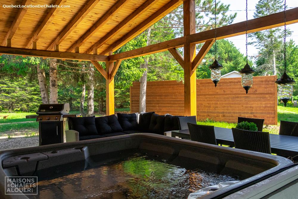 Chalet avec table de billard et spa privé. Idéal pour un couple ou une petite famille. Contactez nous au 1877 526-6879