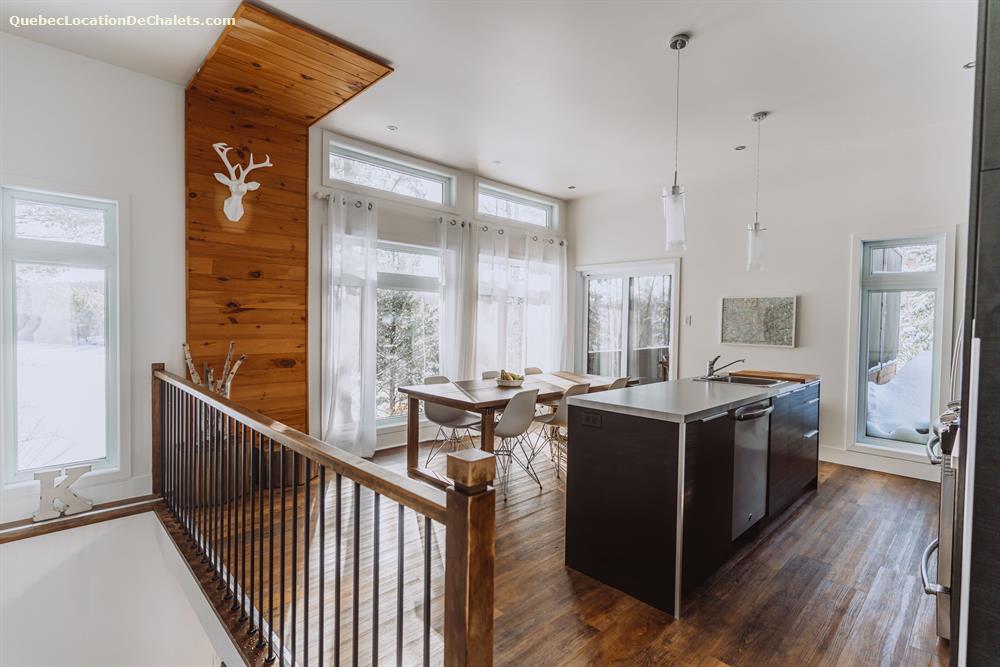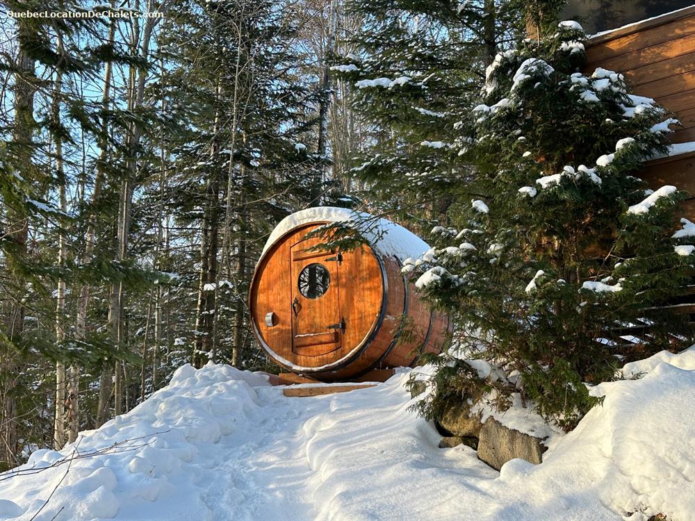 Chalet Kabana is a splendid cottage with a contemporary design, located 5 minutes from the village of Ste-Émélie de l'Énergie. The cottage is equipped with a hot tub and an outdoor dry sauna (both available all year round). In Summer, we will have a private access to Lake Beaudoin with 2 kayaks, 1 canoe and 1 pedal boat (provided from May to October). This cottage has a stunning panoramic view of the lake with incredible views of the surrounding nature. Chalet Kabana is located on a 41,000 sq. ft. wooded lot which makes it a very peaceful place. Wi-Fi is included.