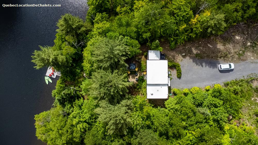 The exterior layout offers you parking for 4 cars, a large terrace with a 5-person hot tub at the back of the cottage and access to a 3-season veranda with a dining area for 6 guests & a functional year round gas BBQ. Towards the lake, you will find a private dock with chairs to relax, 2 kayaks, 1 pedal boat and 6 life jackets (adult size) and a large bench around the outdoor fireplace (wood supplied).