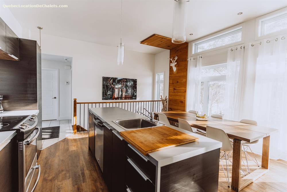 With its large bay windows facing the Lake Beaudoin, the Chalet Kabana offers a breathtaking view of the lake and surrounding nature. This two-storey cottage has two bedrooms and can accommodate up to 6 people very comfortably.