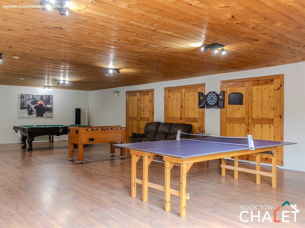 Nestled in the Laurentians, this cottage can accommodate up to 90 people and offers an intimate and grandiose setting. The 200-acre private estate offers activities in all seasons: hiking, snowshoeing, in-ground pool, volleyball, disc golf and more. Two BBQs, a spa and campfires will make your stay unforgettable.