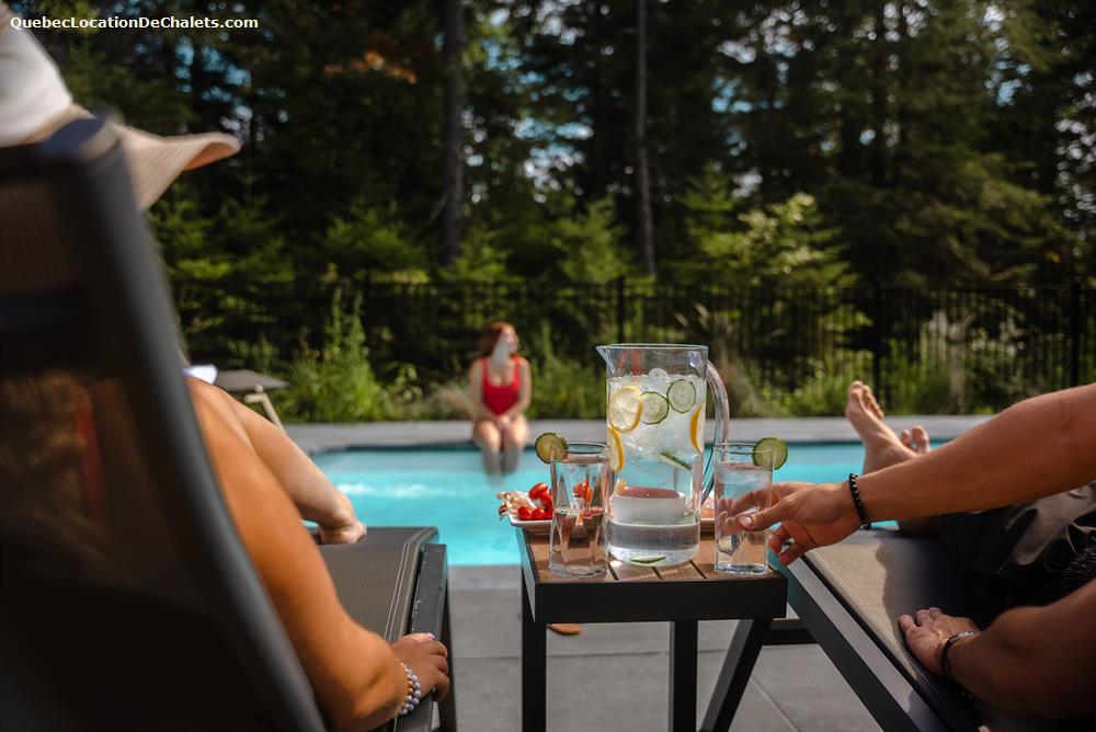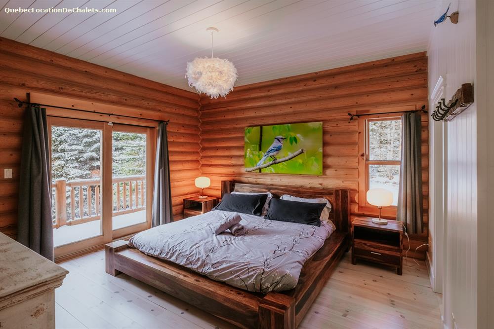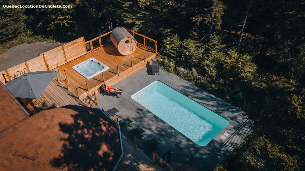 The Chalet Blue Jay is a beautiful log cabin located on a private lot of over 85,000 ft2 in the prestigious Fiddler Lake Resort, ideal for groups up to 12 persons. Sheltered from neighbours and prying eyes, you will be sure to find peace and privacy and fully enjoy your vacation! Relax in complete serenity in our outdoor hot tub and dry sauna (all year round) and enjoy our 100% private in-ground heated swimming pool (open from June to the end of September). Pool table, ping pong table, poker table, indoor and outdoor fireplaces included. You also have access to Fiddler Lake, less than 3 minutes' walk from the chalet.