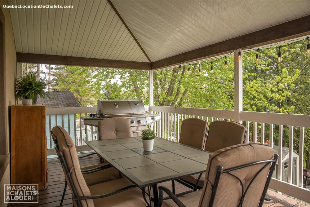 In the evening, you will be able to relax around the outdoor fireplace. To add to the amenities of the chalet, you will also find a private 4-season spa and a barbecue.