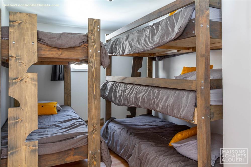 Ground floor: Dining room / Kitchen / Living room / Boudoir / Bedroom #1 with 1 double bed / Bedroom #2 with 5 bunk beds / Full bathroom.