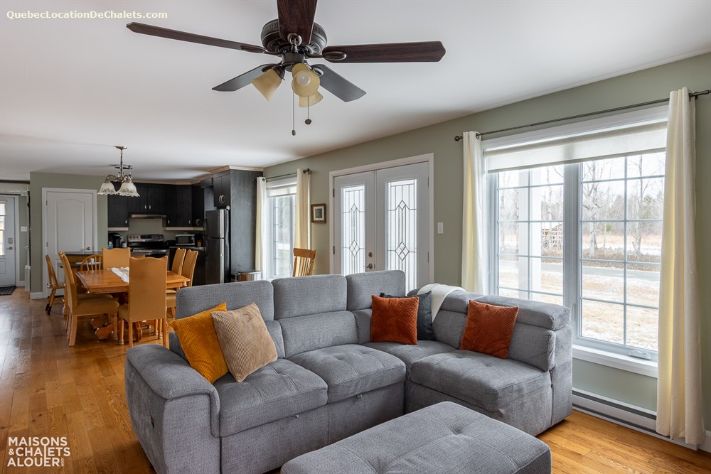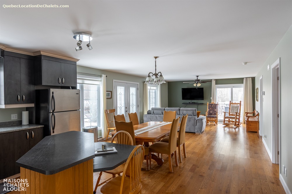 Located in Danville, in the Eastern Townships, this unique place will charm you with its immersion in nature, ensuring everything you need for a successful and tranquil stay. Over 20 acres of land await you, mostly wooded and bordered by the Nicolet River. The name of the cottage was not chosen at random; there is indeed a magnificent waterfall that enhances this river. To get there, a 5-minute walk on a gravel trail (suitable for strollers) takes you to a platform with a shelter overlooking the river. You can comfortably sit in the shelter and admire the waterfall. You won't tire of it! Soothing sounds will accompany you; a mix of calm, trickling water, bird songs, and the breeze from the falls. The surroundings are simply enchanting; the forest with its tall trees perched on cliffs offers landscapes rarely seen.