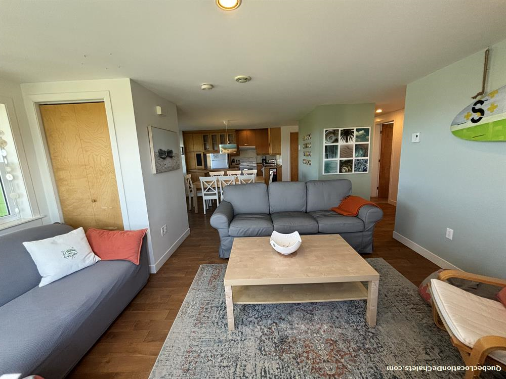 The ground floor, open concept, is very bright. It includes a beautiful warm living room with 2 large sofas and smart TV, a dining room with large table and extensions that can seat 8-10 people comfortably, a very well equipped kitchen, 2 spacious bedrooms and a large bathroom with shower.