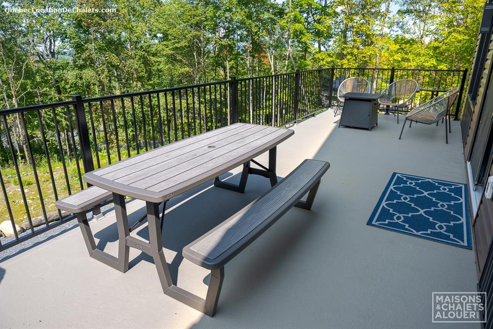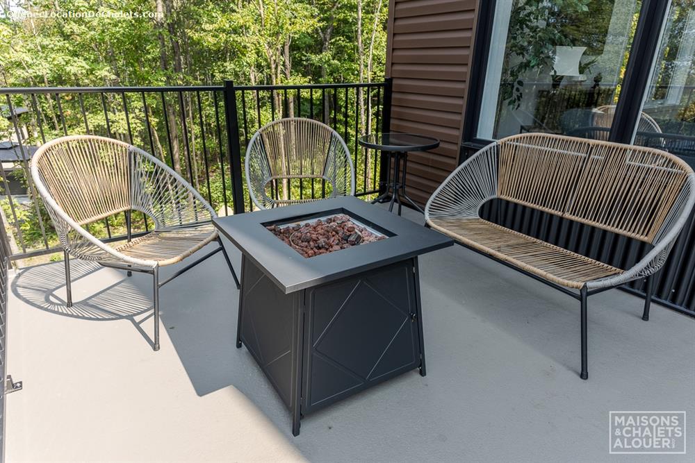 Relax at the end of a long day of adventures in the private 4-season spa. Take advantage of the two outdoor fireplaces to extend the discussions under the stars with your loved ones. Please note that the environment of the cottage is quite intimate, but that the other cottages are still visible through the trees.