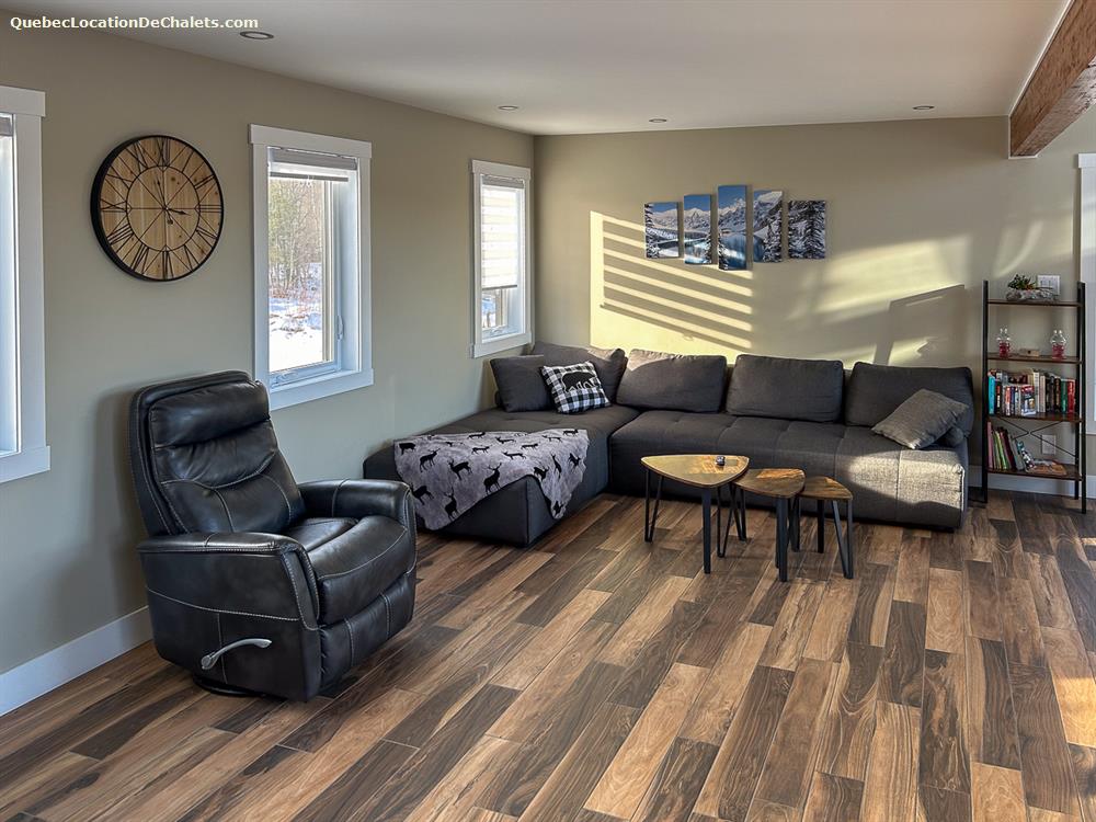 During the warmer months, guests can enjoy various activities such as cycling, hiking, and golf. The local municipality also offers attractions like the vélorail, the Tour cycliste du lac Aylmer, and the Concerts sous les arbres. The nearby Parc Bellerive, located approximately 4 km from the chalet, features a marina, a free boat launch ramp, a walking trail, and a restaurant, enhancing the overall experience. In winter, the area offers opportunities for snowshoeing, cross-country skiing, downhill skiing at Mont Adstock, tubing, ice skating, and ice fishing. Additionally, snowmobile and ATV trails are accessible near the property.