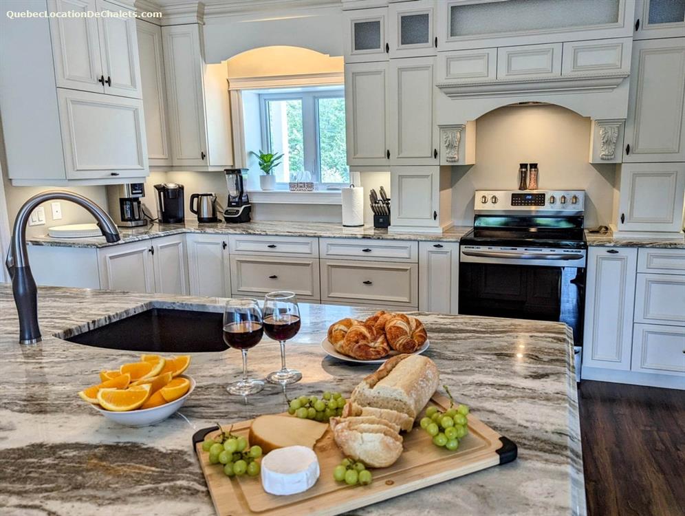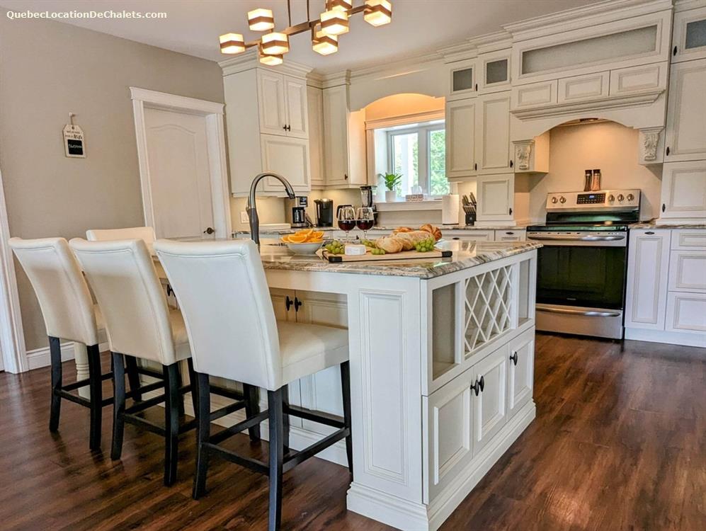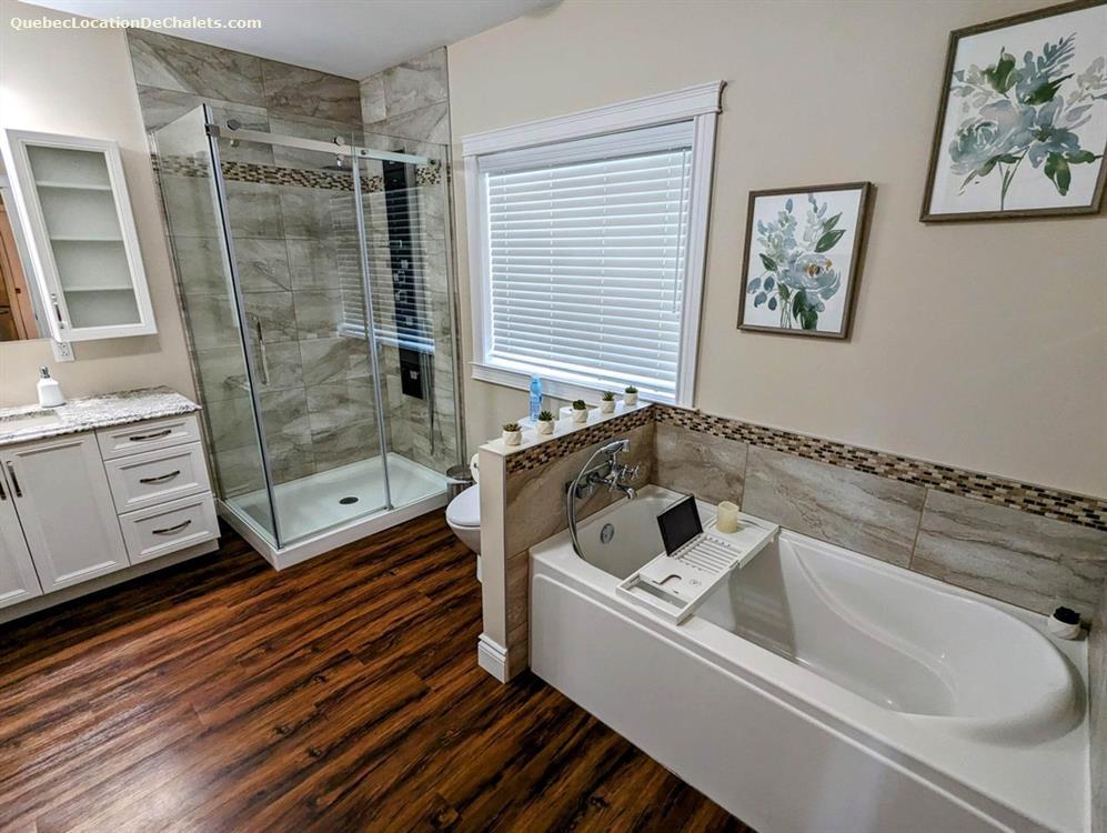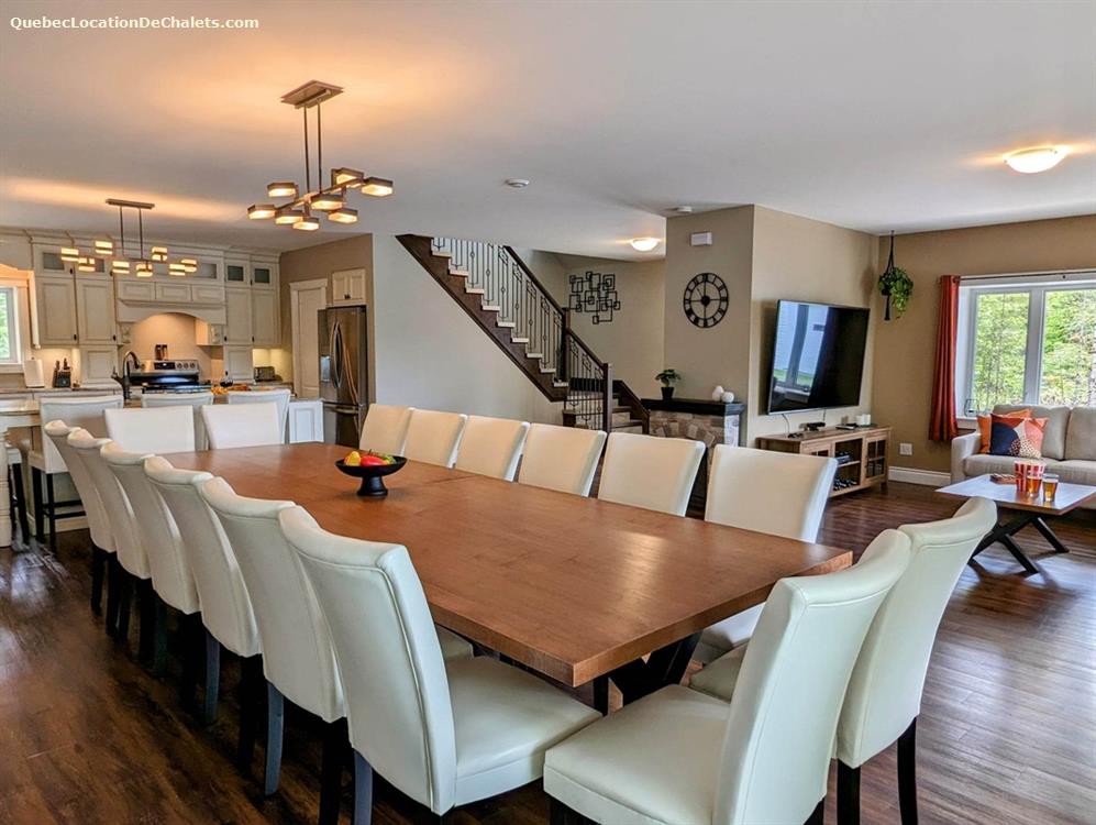 This luxury waterfront cottage to rent is ready to welcome you, your family, friends or colleagues for hours of fun and relaxation. A private 4-season spa, heated in-ground pool and spectacular river views will satisfy the hydrophile in you! For water sports enthusiasts, the river is navigable for nearly 15 km and leads to Rivière aux Saumons and Lake Louise. This cottage to rent has its own private dock where you can moor your boats, and there are 4 kayaks provided on site. For anglers, several species of fish are caught here, including pike, yellow perch, bass and walleye.