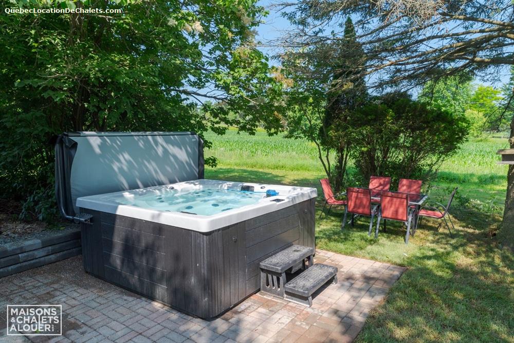 At sunrise, have your coffee while looking at the view and listening to the birdsong offered by the Saint-François River. At sunset, enjoy an expansive landscaped garden, ideal for relaxing or hosting barbecues with family and friends. In the evening, slip into the 4-season spa and gaze at the stars while resting.
