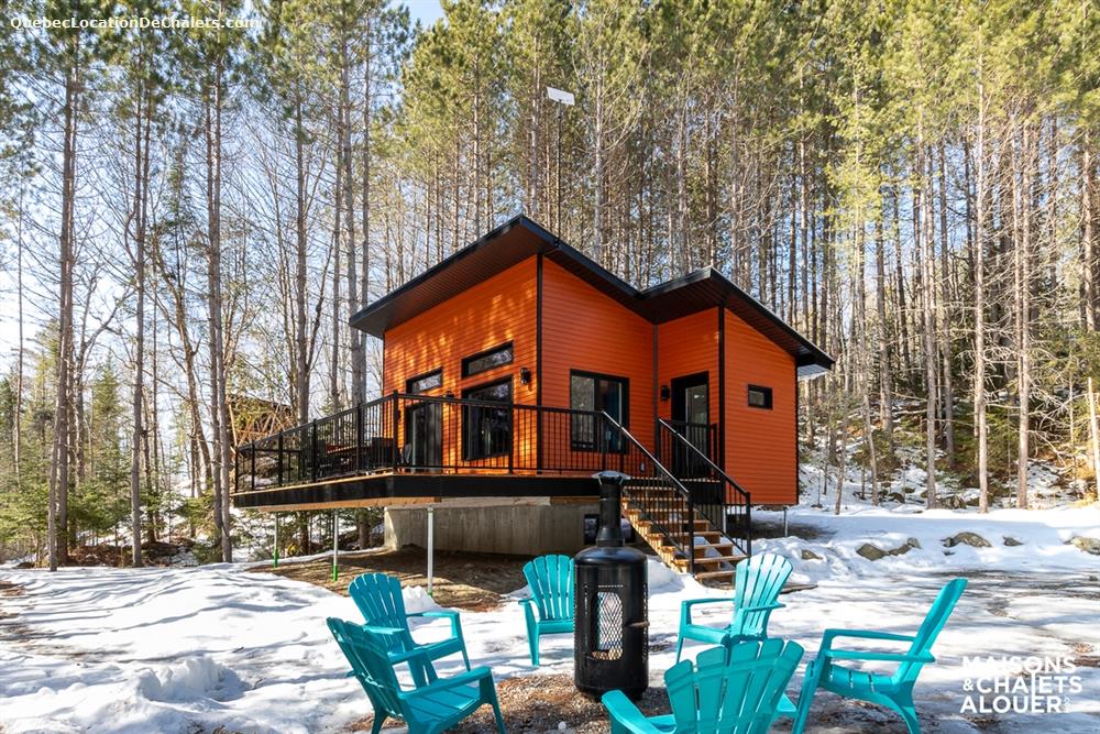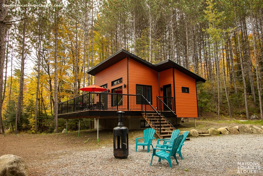 Located in St-Romain, in the Eastern Townships, come and relax in the forest in this new propane and solar-powered cottage. The cottage is located directly on the banks of the Sauvage River. In summer, you'll enjoy listening to the river flow as you relax on the large terrace.