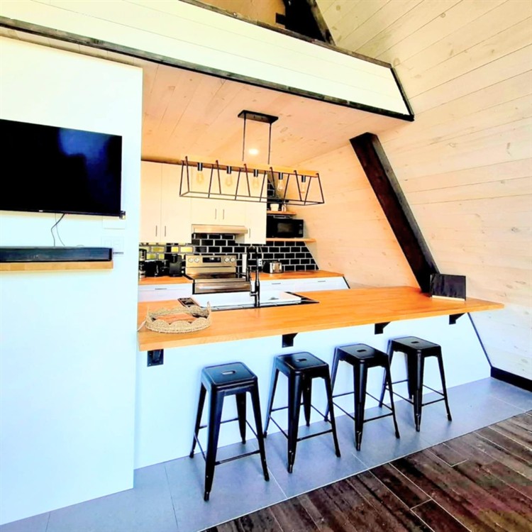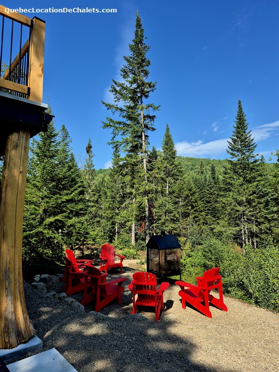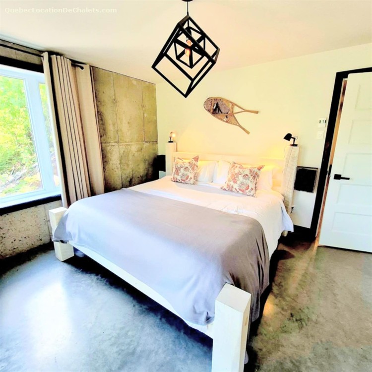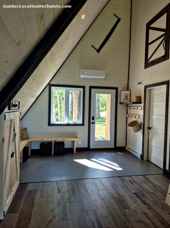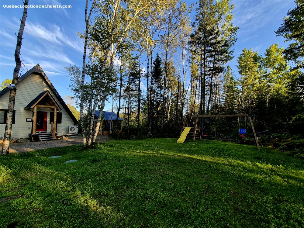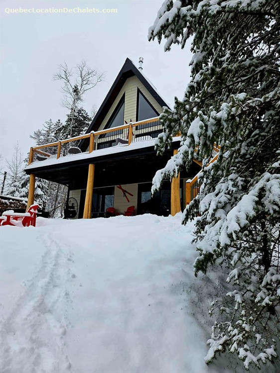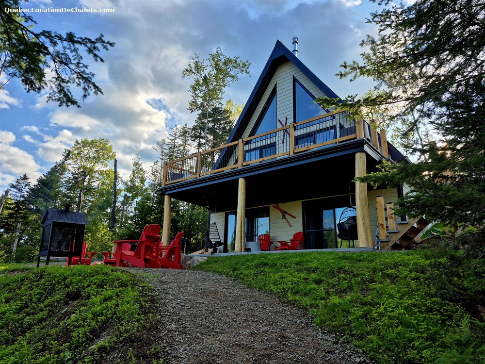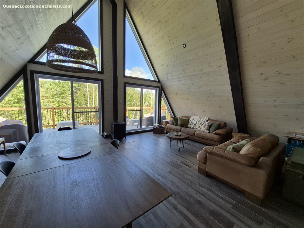 Tucked away in the heart of nature and bordered by the stunning Mékinac River, this brand-new A-frame chalet offers comfort, tranquility, and breathtaking views.