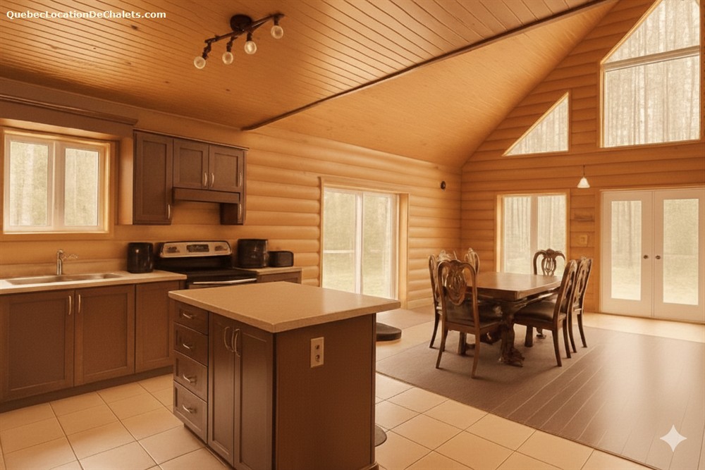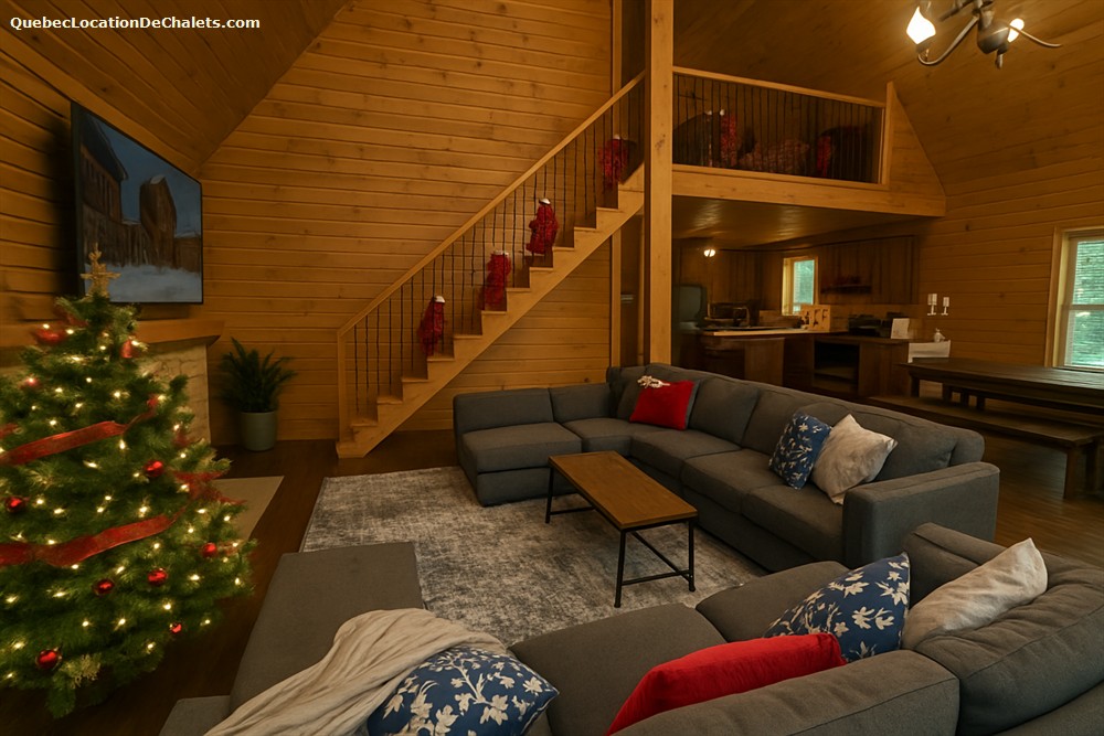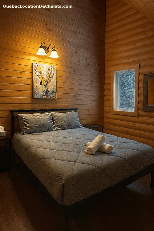 Chalet neuf à 1h30 de Montréal, face au lac, parfait pour familles et amis. 3 lits queen, 2 sofa-lits, Wi-Fi fibre, foyer, billard et babyfoot. Spa 7 places, BBQ, coin feu, grand terrain privé. Animaux acceptés.