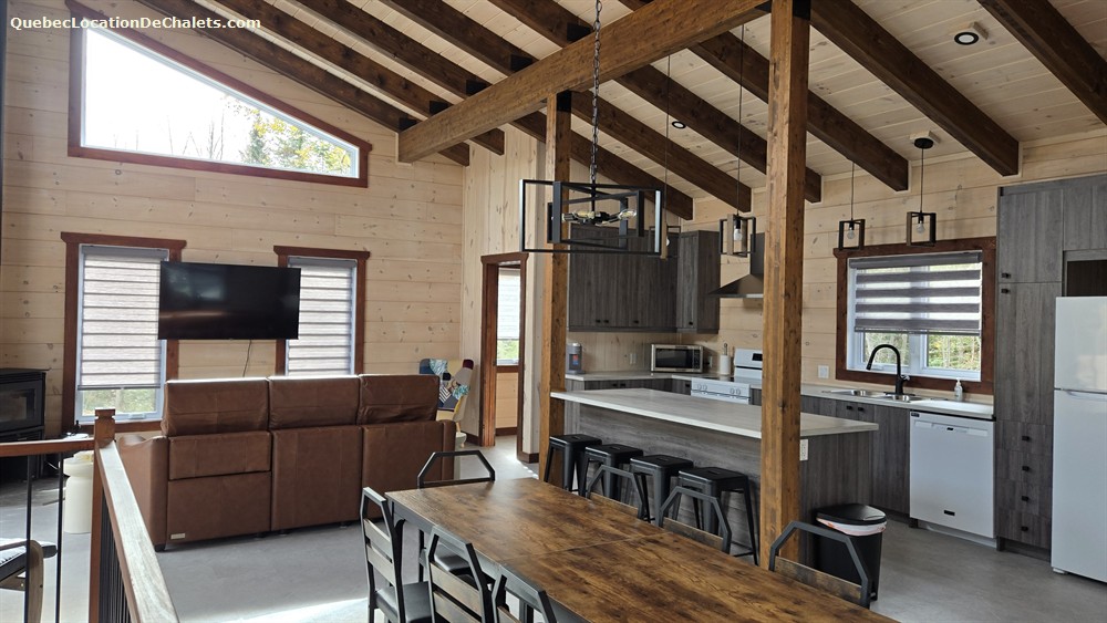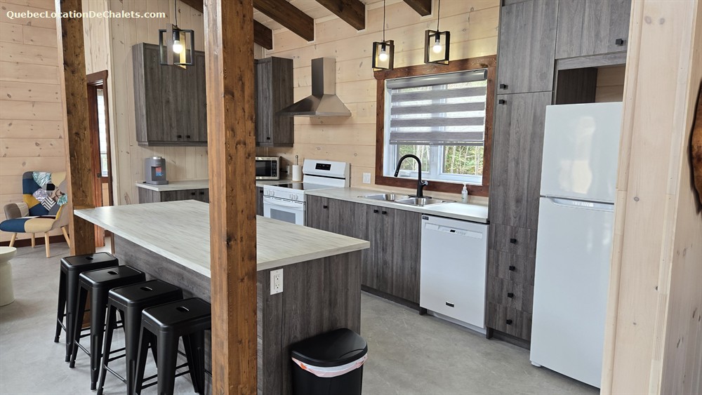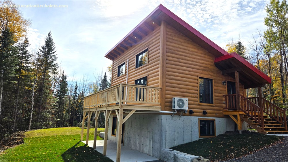 LOG COTTAGE located on the edge of a lake. Direct access to the lake with a rowboat provided. Fully equipped cottage (stove, refrigerator, microwave, coffee maker, toaster, dishwasher, 2 fully equiped bathroom (shower), 1 powder room, television) and available year-round for rent.
