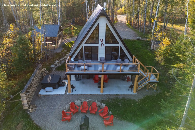 Nestled in the heart of nature in Mauricie, along the beautiful Mékinac River, L'Aventure du Bonheur is a brand-new A-Frame chalet offering comfort, tranquility, and a spectacular view of the river and surrounding mountains.