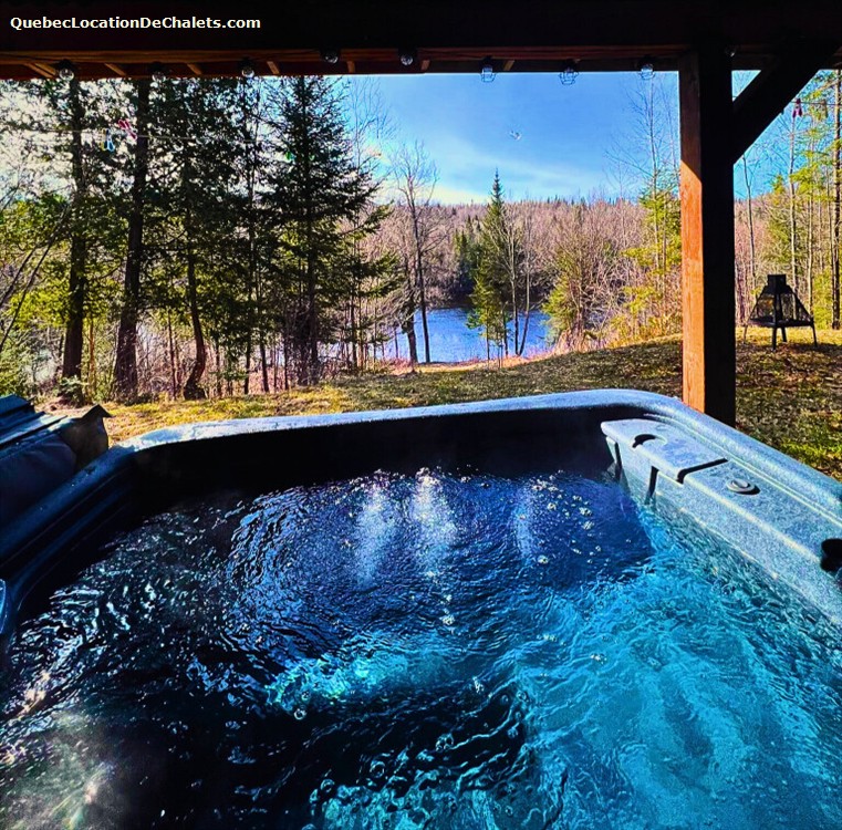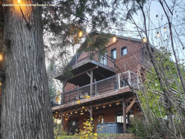 Majestic log chalet located directly on the Bastican River in Lac-Aux-Sables. Modern amenities, rustic style, and eco-friendly construction. A breathtaking landscape.