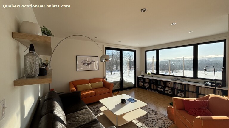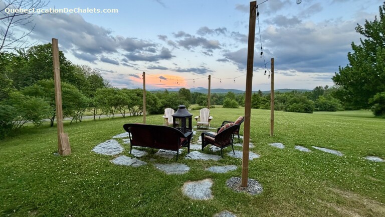 Located at the end of a 2.5 km private road, plowed and maintained year-round, this charming rental chalet offers an exceptional retreat. Close to Scott municipal road, the property boasts one of the most impressive views in the area. You'll enjoy breathtaking, unobstructed views of majestic Mount Sutton, whose silhouette creates a striking spectacle in every season.