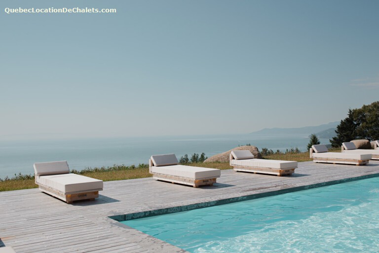 Le Grand Bercail is a luxurious vacation home located in La Malbaie, in the Charlevoix region (1 hour 30 minutes from Quebec City). Nestled in the heart of a breathtaking landscape, this villa feels suspended between sky and earth, with the St. Lawrence River stretching endlessly before you. The architect skillfully took advantage of the region's unique topography to create a home that seems to blend seamlessly with its surroundings.