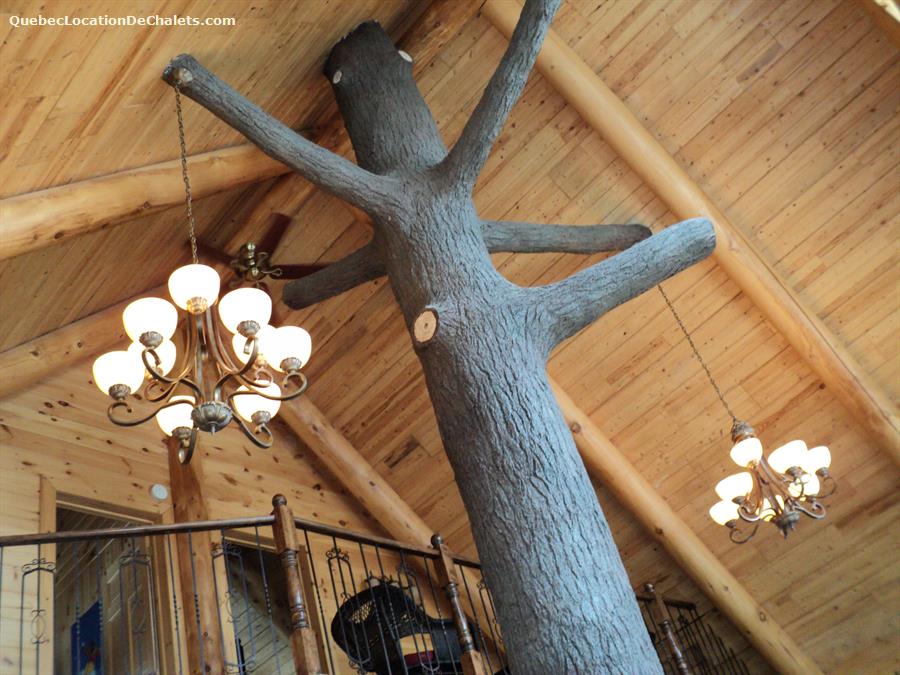 WARM LOG CABIN with majestic giant tree carved inside. Located between 2 ski resorts, the MASSIF and the MONT-STE-ANNE, 15 minutes from each. INCLUDED: snowshoe loan. Located 5 minutes from superb snowshoe trails LE SENTIER DES CAPS. 15 minutes from a spa center and a CROSS-COUNTRY SKI center. Near an ice rink.