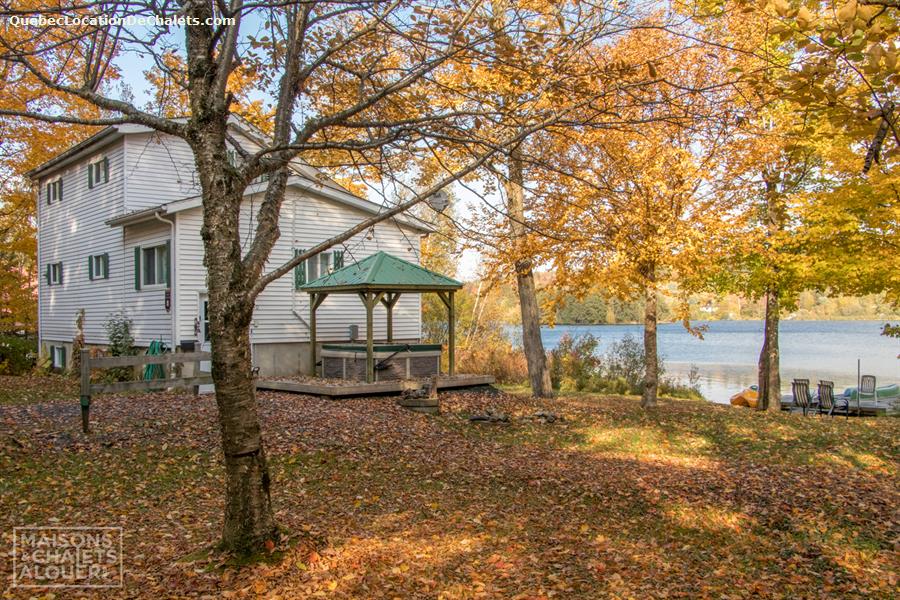 Located on the shores of Lac Denison, this cottage is perfect for outdoor enthusiasts. Explore the lake by canoe, pedal boat or kayak; go snowshoeing, cross-country skiing or hiking—these are some of the fun activities to enjoy during your stay. You can chill out in the spa, go for a dip in the private pool or relax in front of a warm fire in the Vermont Castings style wood stove (firewood provided). *** Please note that abundant aquatic plant life has been reported in the lake, which makes swimming unenjoyable. Between Thanksgiving and the Patriots' weekend, we can not guarantee that the dock will be installed and that the watercrafts will be available. *** The three-storey cottage can accommodate up to 13 guests in 3 bedrooms with 2 double beds, 1 queen-size bed, 1 single bed, 1 futon and 2 sofa beds. Special features include 2 renovated bathrooms, a spacious finished basement and a fully equipped kitchen. The property also has a washer and dryer, flat screen satellite television, DVD player and large patio complete with barbecue. Ground floor (5-6 steps higher than the entrance) : Living room / Kitchen / Dining room / Bedroom #1 : 1 Double bed / Full bathroom (separate bath and shower). Upstairs : Bedroom #2: 1 Queen bed / Bedroom #3: 1 Simple bed + 1 Double bed. Downstairs : Living room : 1 futon and 2 sofa beds / Full bathroom (shower)