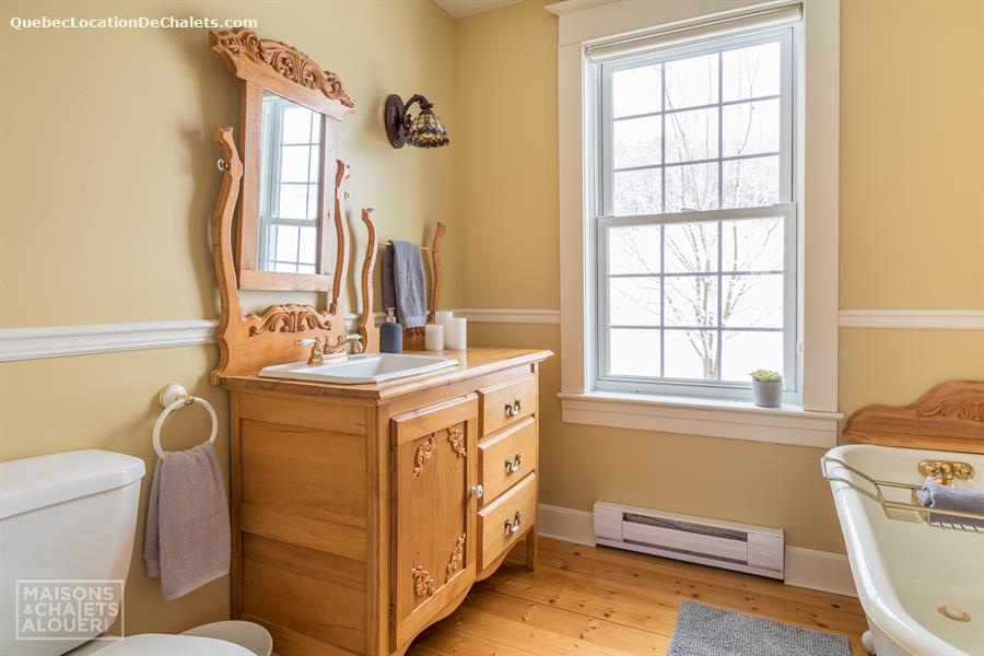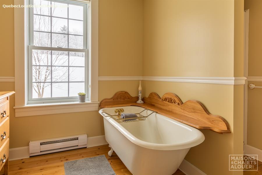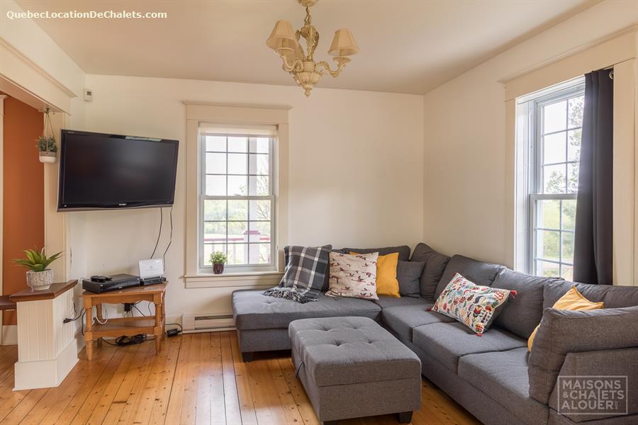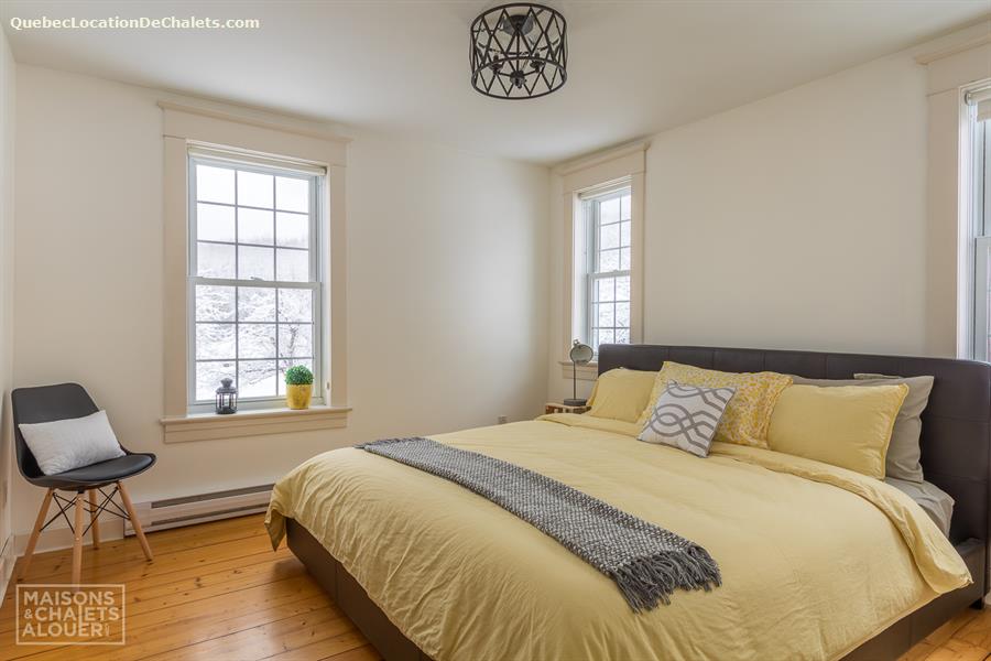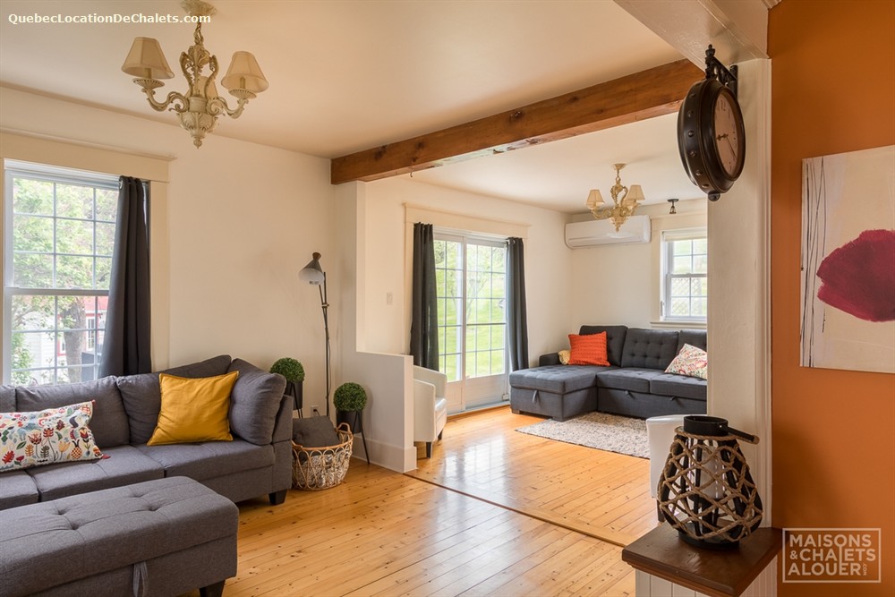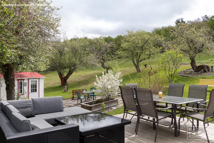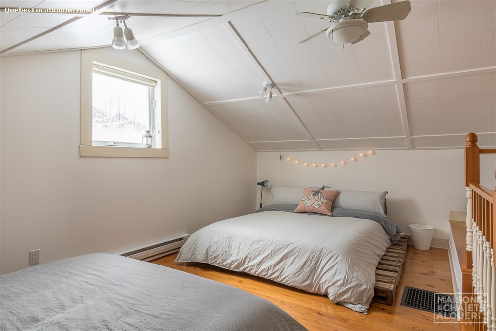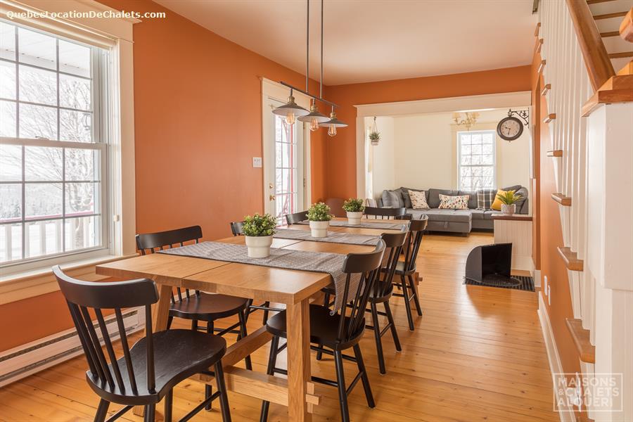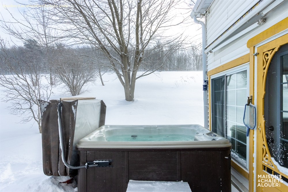 This charming holiday home, located in the Township of Melbourne, in the heart of the Eastern Townships, has everything you need for a stay in nature to make you win your day. The tranquility and beautiful landscapes are waiting. You will have as only neighbors, deer, squirrels and birds, and other small animals that make you visit during your stay. In the evening, gather with friends and family around an outdoor fire. Firewood is provided, but please bring your marshmallows! Far from any light pollution, the location is excellent to admire the sky. Summer or winter, the private spa will also greatly appreciated after a day of outdoor activities. In winter, cross-country skiing and snowshoe hiking can be practiced nearby or at the centre of cross-country skiing from Melbourne or on the trails in the region, including root. ATV trails are accessible to 2 minutes from the cottage. DESCRIPTION OF THE INTERIOR This cottage has been renovated with taste, while keeping its original charm. The rooms are spacious and communicate well with each other. On the ground floor, the huge fully equipped kitchen will charm you for sure. It is perfect to prepare meals together! The kitchen overlooks the dining room and the living room. You can access the floor by one of the two staircases of the House. The main staircase, next to the dining room, leads you to the upstairs rooms as well as the bathroom. Meanwhile, the staircase in the entrance will lead to the large room with several beds. Ground floor: Living room with sofa bed, kitchen, dining room / 1 room with Queen bed / 1 shower room. Upstairs: 1 bedroom with King bed / 1 cha