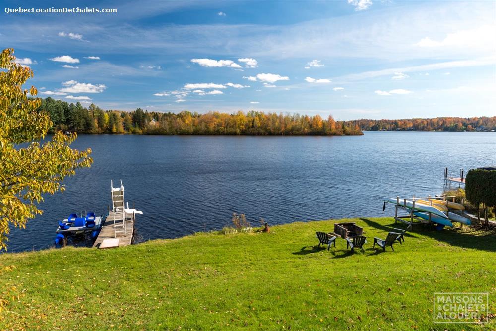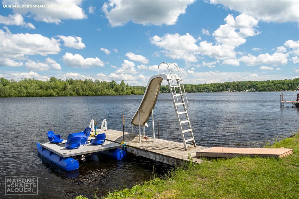 This attractive home on the shores of Lac Boissonneault is a delightful place to holiday. Guests particularly appreciate the stunning view of the lake from the upstairs gazebo deck -a view that can also be enjoyed while relaxing in the spa on the patio below. A large grass yard leads down to a dock and the waterfront. The property is bordered by tall cedar hedges and mature trees that ensure privacy for outdoor activities. For something different, take the children frog hunting or try to catch some fish with a net. You’ll never run out of things to do at La Vacancière. Three kayaks and a pedalboat are available to explore the lake or fish for some of the many species found in Lac Boissonneault (including walleye, sunfish, perch and bass). Finish the day with a delicious meal prepared on the barbecue or relax around a bonfire by the water to the sounds of gently lapping waves and a crackling fire. Stargazers will enjoy pointing the property’s telescope up to the night sky to admire the vast array of celestial objects. Comfort awaits indoors, where extensive fenestration lets natural light flood in. Everything is clean and proper, and all the rooms are designed for relaxation. The living room, kitchen and dining room share a common open area and the bedrooms are spacious. The fully equipped kitchen is a natural gathering place for lively discussions in a congenial atmosphere. Light up the fireplace in the second living room downstairs to enjoy some quiet, intimate moments in front of the flames. With quality bedding and tasteful décor, the bedrooms offer true comfort. There are 2 closed bedrooms and 1 full bathroom. Maximum occupancy is 6 guests.