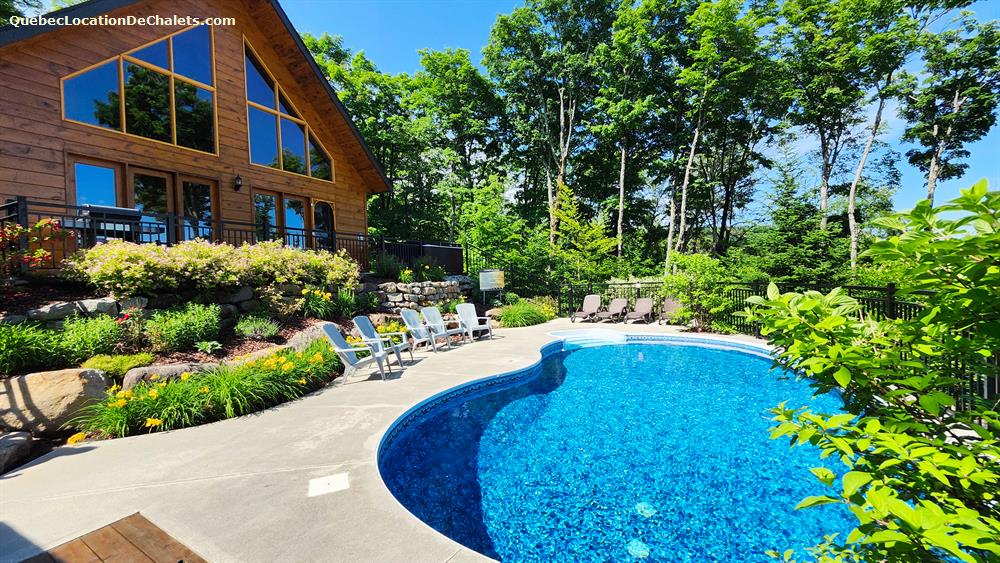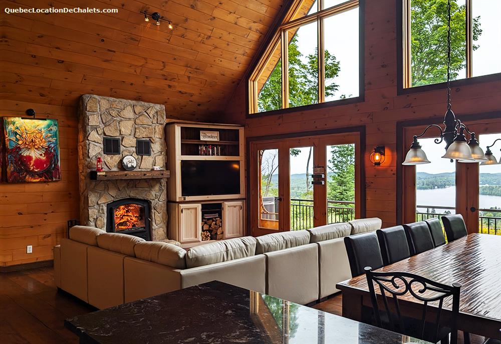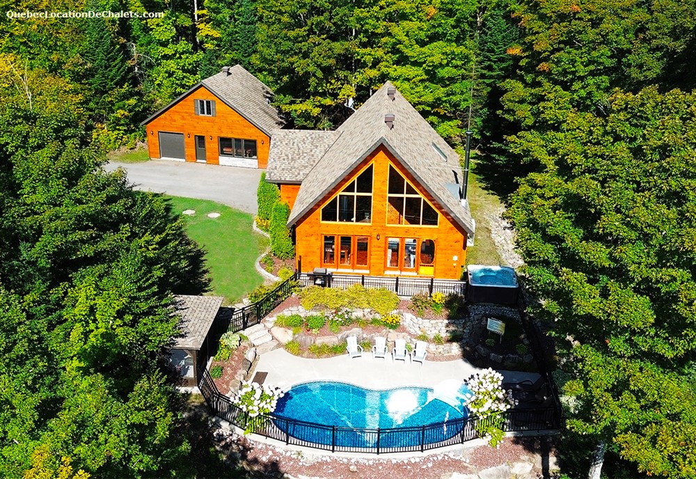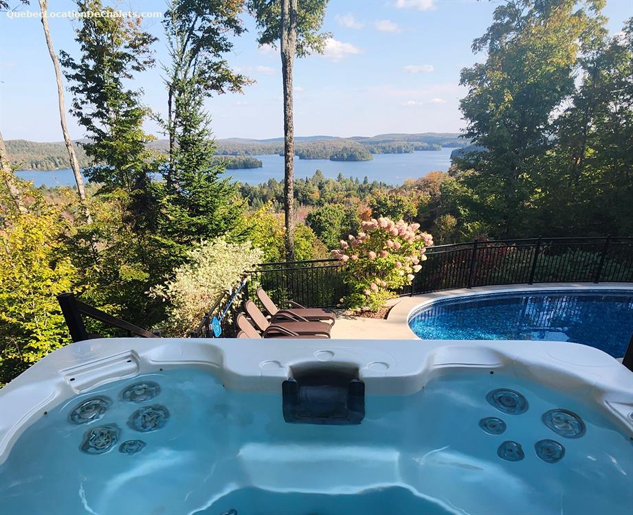 Private heated pool (Sizerin), spa, fireplace, gazebo, home theater, full kitchen, air conditioning and bedding. and gym! The cottage offers a panoramic view of the beautiful Lac des Iles and you can relax on the terrace by it.