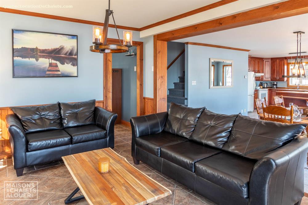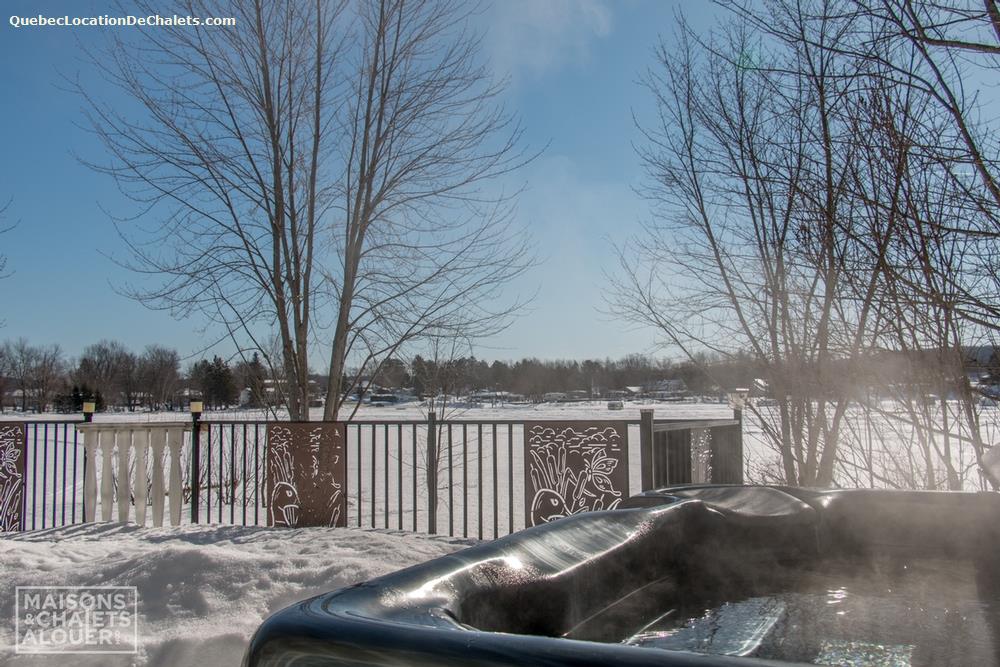 Enjoy a quiet vacation any time of year at La Petite Venise. Located on the shores of Les Trois-Lacs in Saint-Rémi-de-Tingwick, the wooded property boasts a magnificent view of the lake that you can enjoy while relaxing in the private spa. Small ones will have lots of fun on the swings, playground module and large yard. In the summertime, take a craft out to explore the lake, beaches, rivers plants and wildlife. Winter offers just as many fun activities. Snowmobiling, ATV outings, ice fishing, snowshoeing and cross-country skiing are all possible right from La Petite Venise. Discover this charming property any time of year—you’ll be delighted by the peace and comfort! The interior has a spacious, well-lit open-concept layout to which prominent woodwork adds considerable charm. La Petite Venise can accommodate up to 12 comfortably. With 4 closed bedrooms with queen-size bed and quality bedding, 2 bathrooms with bath, and a common area comprising kitchen, dining room and living room opening onto the patio, guests are sure to enjoy a comfortable, relaxing stay. Be sure to spend some special moments with family or friends in front of a roaring fire in the living room wood stove. For optimal comfort, the floors of the ground floor as well as the bathroom upstairs are heated. Ground floor: Kitchen / Dining room / Living room : 1 futon / Bedroom #/ : 1 Queen bed + 1 Double murphy bed / Bedroom #2 : 1 Queen bed / 1 Full bathroom (with bath, washing machine and dryer) Upstairs: Bedroom #3 : 1 Queen bed + 1 Double bed / Bedroom #4 : 1 Queen bed / 1 Full bathroom (with separate shower and clawfoot bathtub)