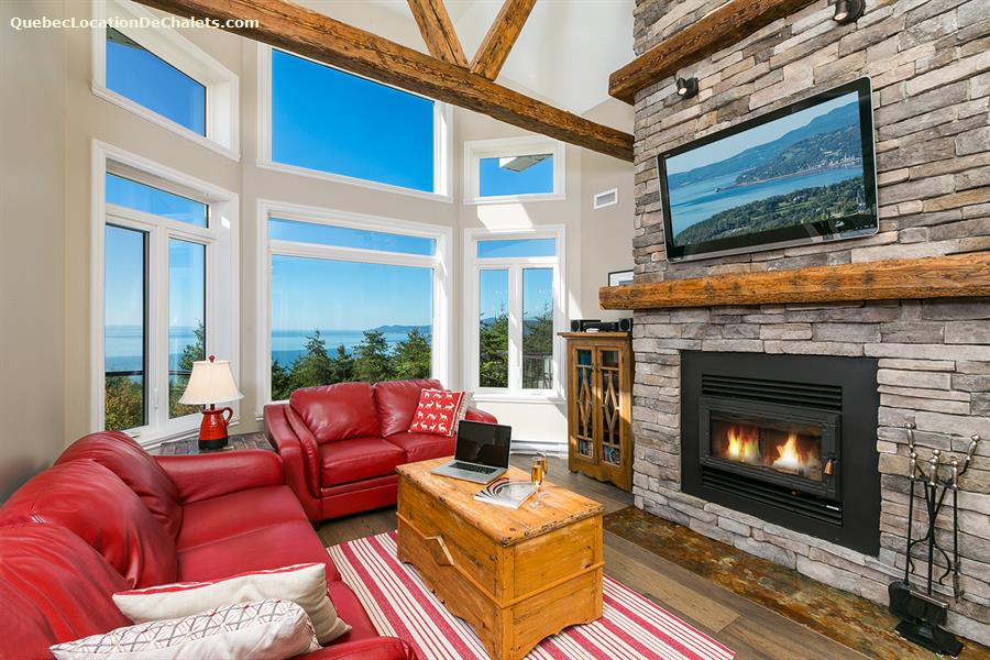 New construction. Luxurious house and spectacular view. Our house is situated in the beautiful City of La Malbaie, more precisely in the Cap- à l'Aigle area . Being erected on mountainside, it offers a breathtaking view of the St-Laurence River. In addition, being on a wooded lot, the house is hidden from the road allowing tranquility and privacy.