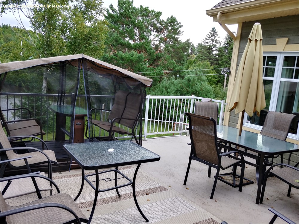 There is a large terrace with lake view, covered swing , table and 6 chairs, parasol, clothesline, BBQ, .