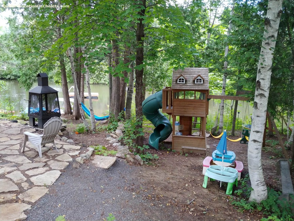 There are 7 hammocks, children's play module with sandbox (toys included), 4 season fire area (wood included) with several chairs, large playground (badminton with several rackets and sparrows provided, volleyball (ball provided), soccer ball, iron game, washer game, lawn bowls, frisbee.