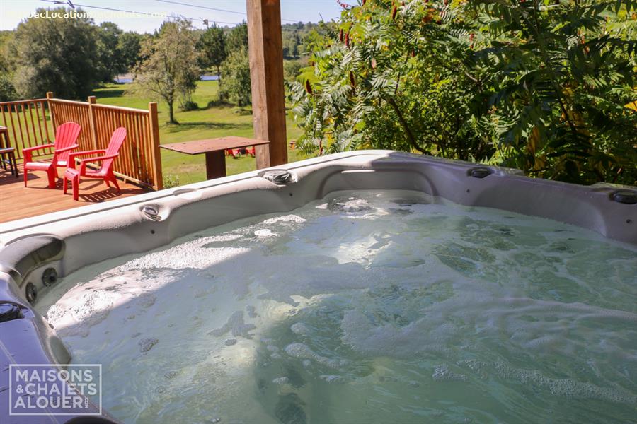 This magnificent property set on the banks of the Saint-François River is the perfect setting for a dream vacation. With room for 26, this attractive, modern property is ideal for large family gatherings and business events. With all the comforts of modern living combined with a touch of rustic charm, Aux Rives du Bonheur is sure to please any guest. Large veranda windows let in plenty of natural lighting and provide an excellent view of the four-acre property. Entertainment options abound in the spacious living room with pool and soccer tables, large flat-screen television and wood stove. The landscaped property has several areas to play or relax, including a patio with a six-person spa, fire pit, volleyball court, and boat ramp (kayak, canoe available onsite). Please note that the river is shallow in places and is appropriate only for kayaks, canoes. Currents may be strong when the river is high, so always wear a lifejacket. Business events: The dining room can also serve as an elegant and attractive conference room. It has an efficient lighting system with variable control and blackout curtains for projected presentations (projector not provided). The kitchen includes a professional coffeemaker for large groups. Aux Rives du Bonheur has everything for an enjoyable stay! Spread over 3 floors are 8 modern-style closed bedrooms with new queen-size beds, 2 complete bathrooms, a kitchen with the latest in appliances (stainless steel coffeemaker, toaster, stove, refrigerator and dishwasher), and a trendy dining room that can seat 14 comfortably.