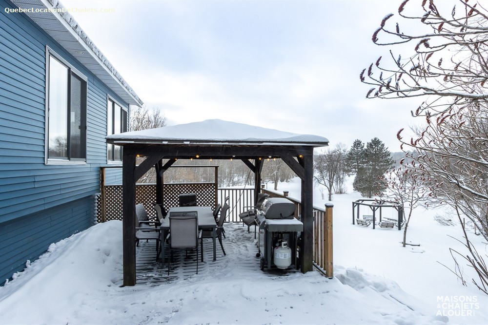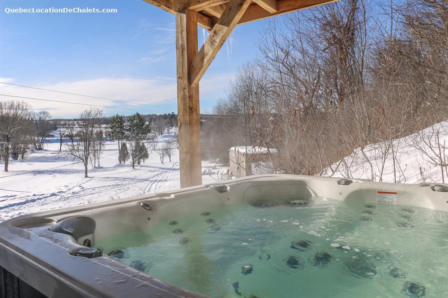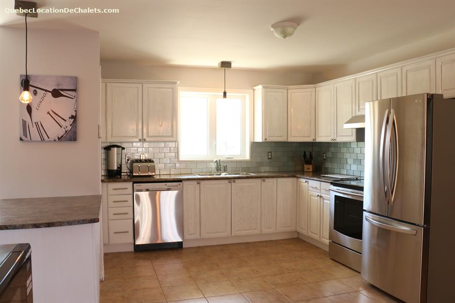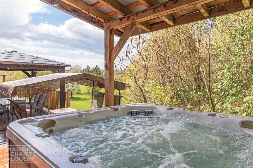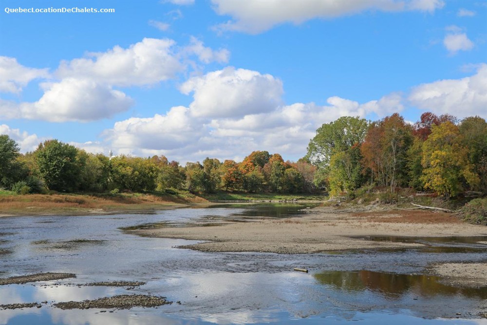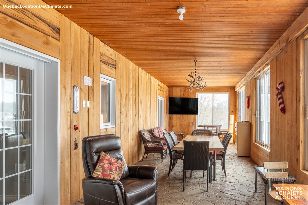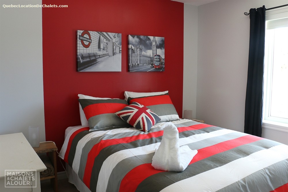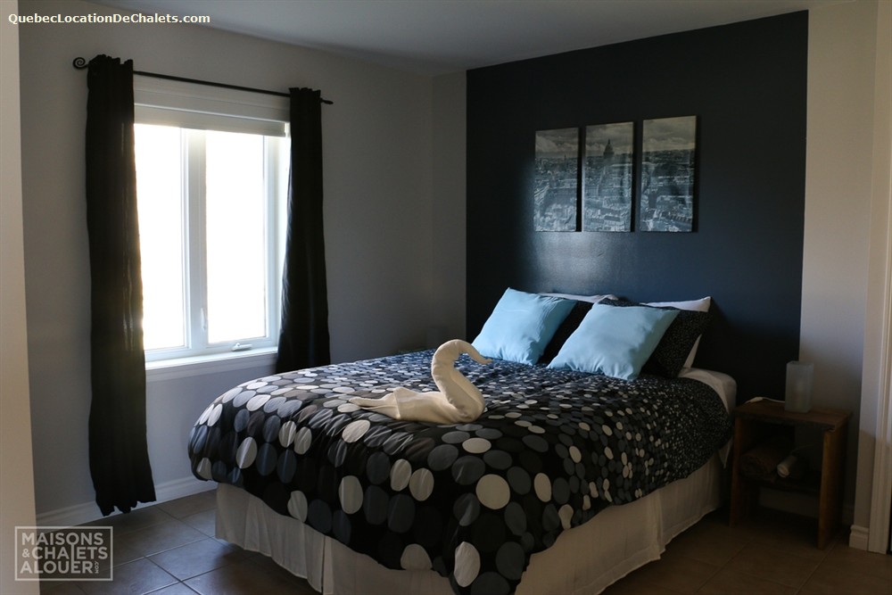 This magnificent property set on the banks of the Saint-François River is the perfect setting for a dream vacation. With room for 26, this attractive, modern property is ideal for large family gatherings and business events. With all the comforts of modern living combined with a touch of rustic charm, Aux Rives du Bonheur is sure to please any guest. Large veranda windows let in plenty of natural lighting and provide an excellent view of the four-acre property. Entertainment options abound in the spacious living room with pool and soccer tables, large flat-screen television and wood stove. The landscaped property has several areas to play or relax, including a patio with a six-person spa, fire pit, volleyball court, and boat ramp (kayak, canoe available onsite). Please note that the river is shallow in places and is appropriate only for kayaks, canoes. Currents may be strong when the river is high, so always wear a lifejacket. Business events: The dining room can also serve as an elegant and attractive conference room. It has an efficient lighting system with variable control and blackout curtains for projected presentations (projector not provided). The kitchen includes a professional coffeemaker for large groups. Aux Rives du Bonheur has everything for an enjoyable stay! Spread over 3 floors are 8 modern-style closed bedrooms with new queen-size beds, 2 complete bathrooms, a kitchen with the latest in appliances (stainless steel coffeemaker, toaster, stove, refrigerator and dishwasher), and a trendy dining room that can seat 14 comfortably.