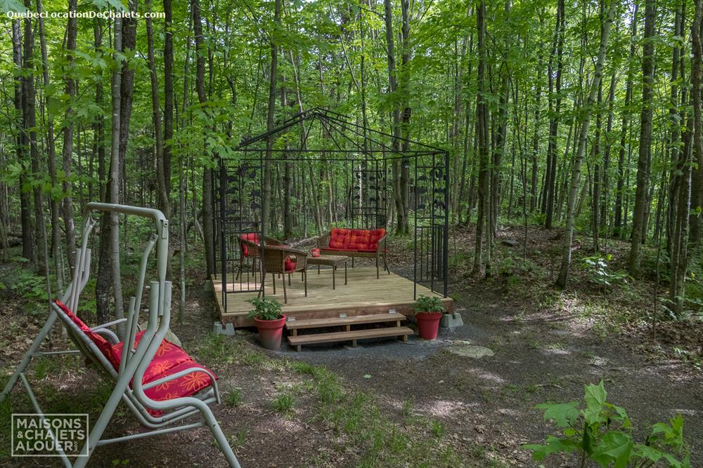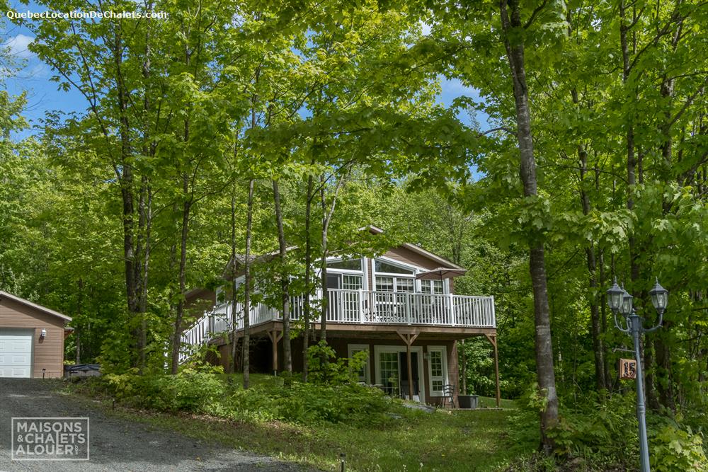 COTTAGE RENTAL - LE CHALET DE LA BAIE Located close to Lake Boissonneault, with its large wooded lot and its amenities, you will find at Chalet de la Baie, all the tranquility you seek. Access to the lake is possible through Camping des Baies where you can practice kayaking, canoeing, pedalos and enjoying the beach for a fee. You can also bring your boats there. It is also possible to go to the municipal park of Pointe Marchand where swimming is allowed. There you will find picnic tables, walking paths and a children's playground. Access to this park is free. These two locations are nearby, about a 2-minute drive away. No neighbors in the back, you will have the woods to fully enjoy nature and calm. There is a fireplace in the yard. Enjoy it, we even provide the wood! The 4-season private hot tub will also be greatly appreciated for complete relaxation. At diner, go out on the terrace and enjoy your meals with your family, in the sun. In the morning, you can enjoy your coffee on the terrace with the birds singing. Welcome to Quad lovers: a minute away from the cottage, at Lake Boissonneault, there is an access to the trails of the Club Quad de la MRC du Val St-François. Over 180 km of federated trails that can take you to Bromptonville, Richmond, Asbestos or Valcourt and even further. To see the map, visit: http://valst-francois.fqcq.qc.ca