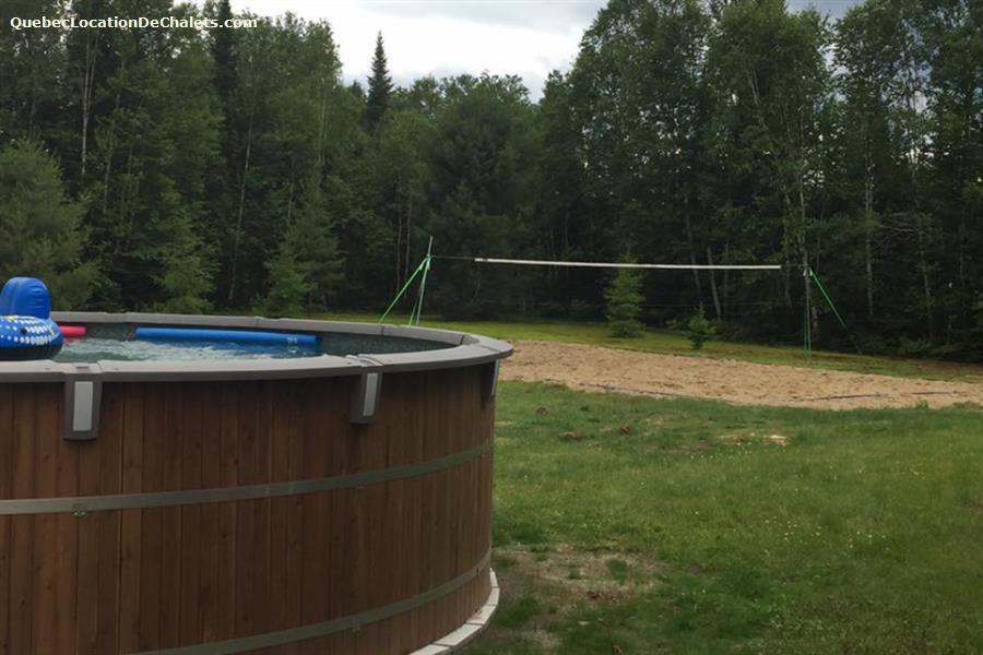 Monthly or seasonal rental. Chalet at 5 minutes from the ski slopes of Tremblant on a plot of more than 2 acres with no neighbours nearby. First assets: indoor and outdoor pools, spa, and sauna private with beautiful wooded no neighbors! Very rare on the ground floor, very sunny cottage in the heart of nature. Large House of 81'x37', 4 large bedrooms with 3 bathrooms, living room 27'x18' with natural fireplace, heated indoor pool, sauna, solarium. Field very large and very private with outdoor spa and outdoor swimming pool, outdoor fireplace, beach volleyball ground. Maximum capacity of 10 adults and 2 kids. Peace and pleasure guaranteed!