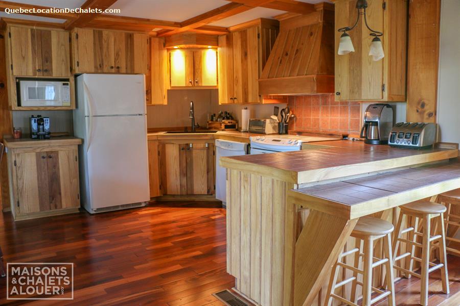Chalet La Douce Rivière can accommodate up to 11 people. Its abundantly windowed living room lets in natural light during the day and offers you a magnificent view of the starry sky in the evening. There is a 50' TV with satellite and many board games.