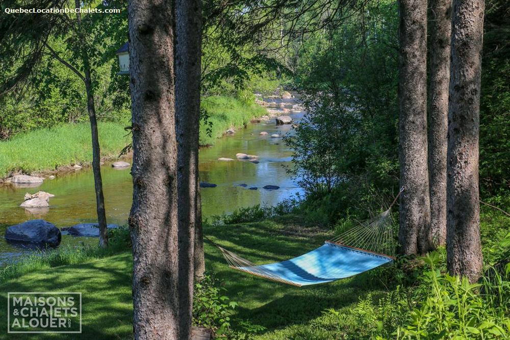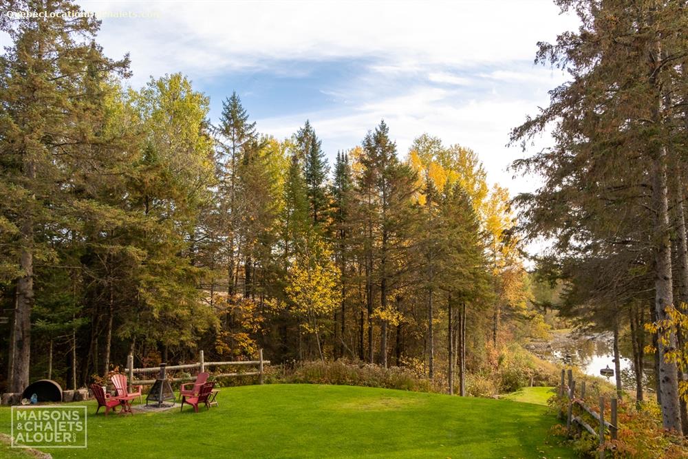 Here, everything has been designed to allow you to fully enjoy the outdoors: a space set up to make a campfire, a private 4-season spa installed on the terrace overlooking the river. You will also find a hammock very close to the river and another next to the pond, perfect for taking a nap in the shade listening to the sound of the water and the wind in the trees.